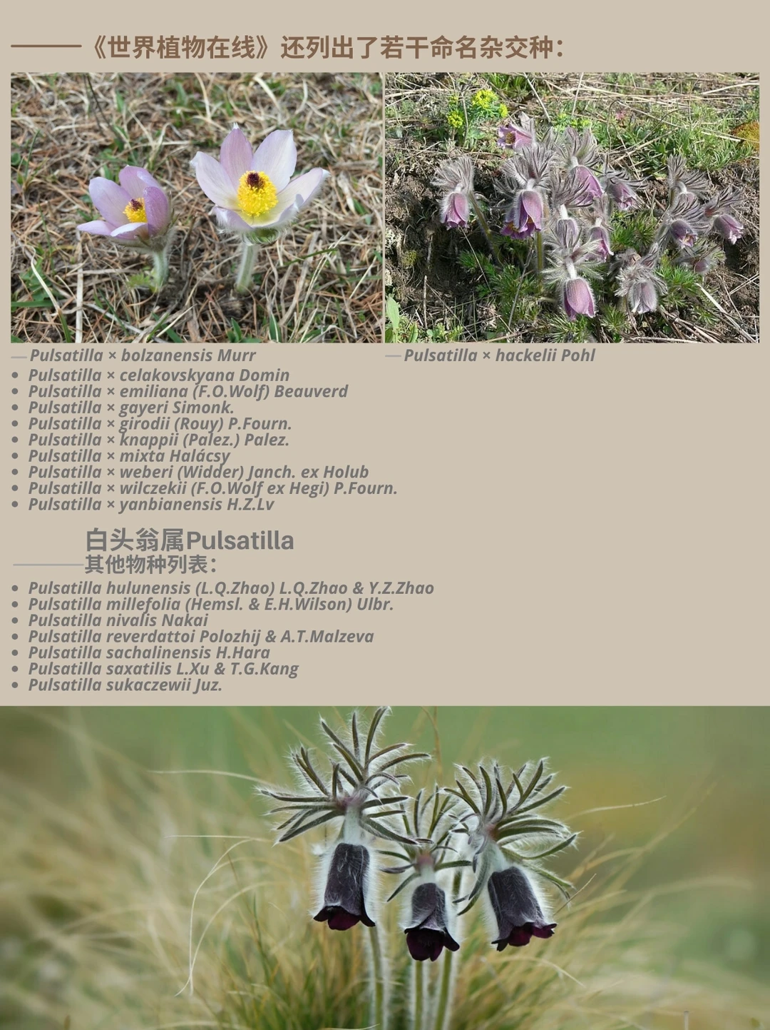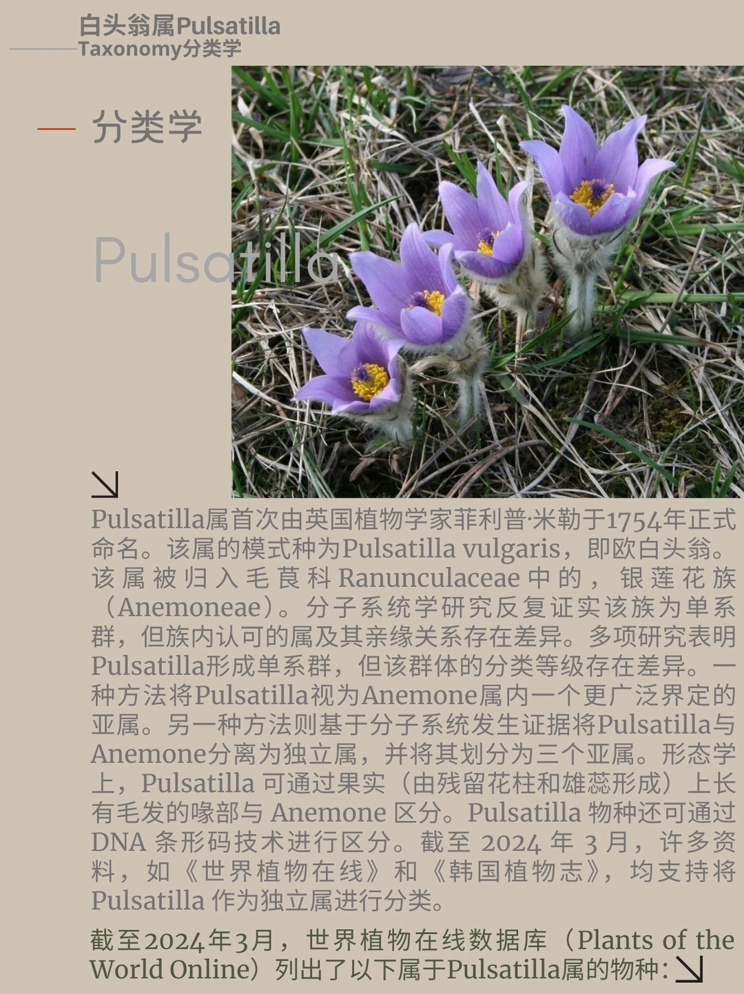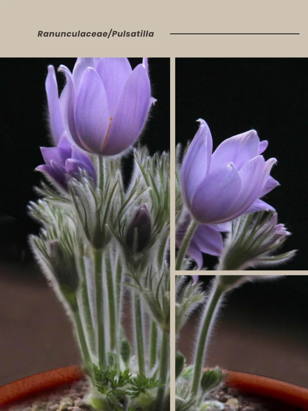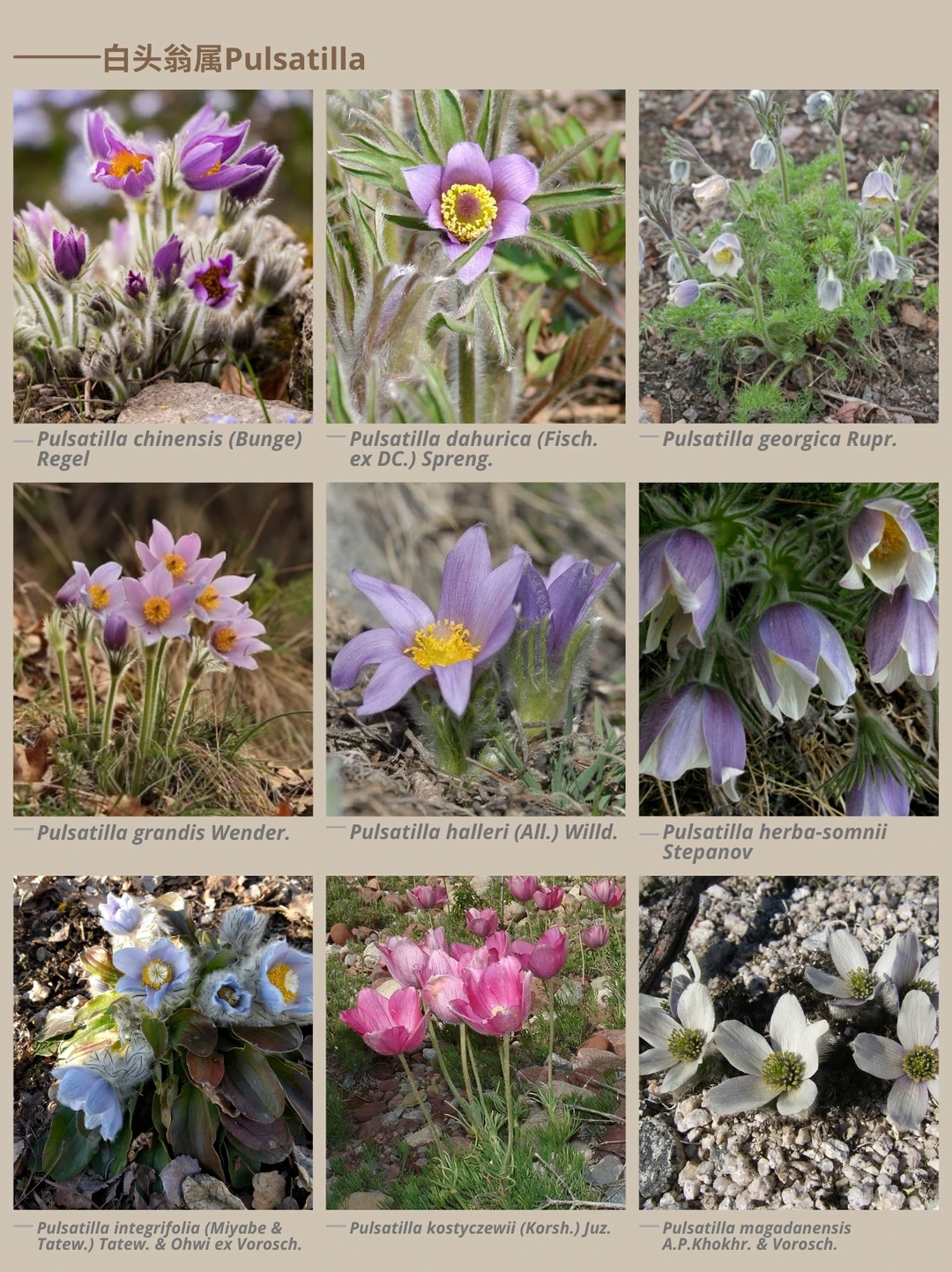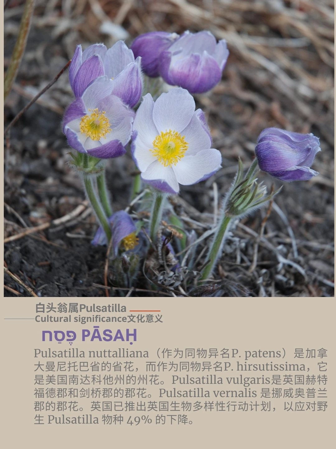 山野草 毛茛科 白头翁属 Pulsatilla 多年生草本植物 花园植物 盆栽 白头翁属Pulsatilla,是一个包含约40种多年生草本植物的属,原产于北美、欧洲和亚洲的草地和草原。常见名称包括复活节花、风花、草原鸢尾、复活节花和草地风信子。该属的多个物种因其细裂的叶片、单生的钟形花朵以及羽毛状的果序而被视为观赏植物。花朵的显眼部分由萼片组成,而非花瓣。“复活节花”这一俗名源于其在复活节期间(希伯来语:פֶּסַח pāsaḥ)的开花时节。