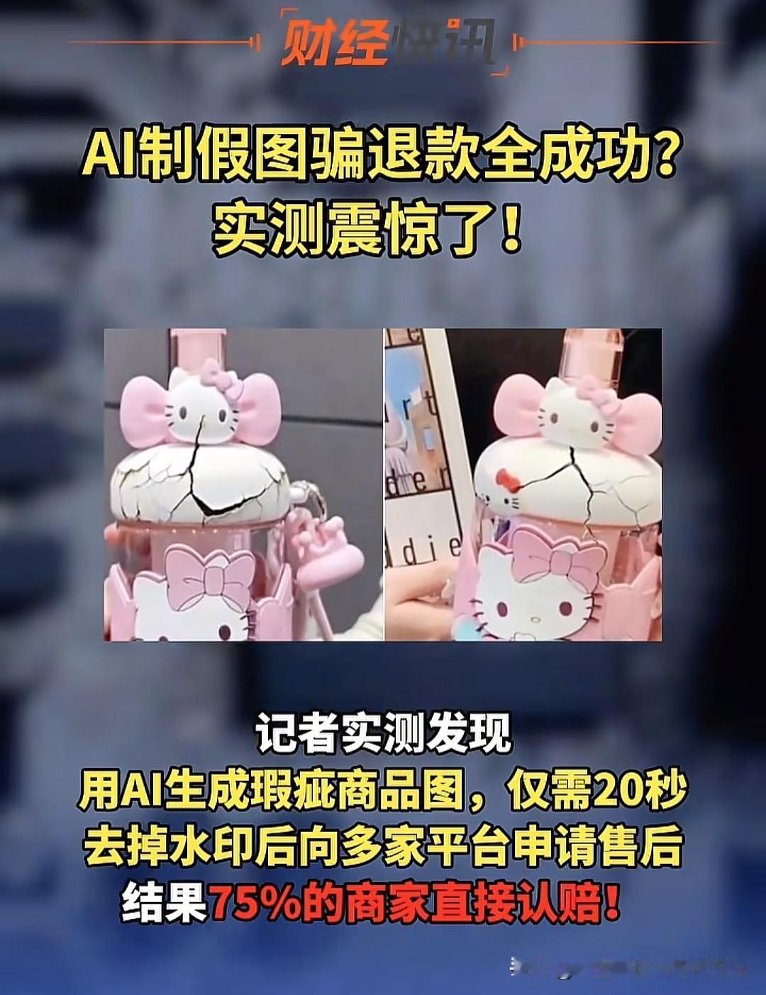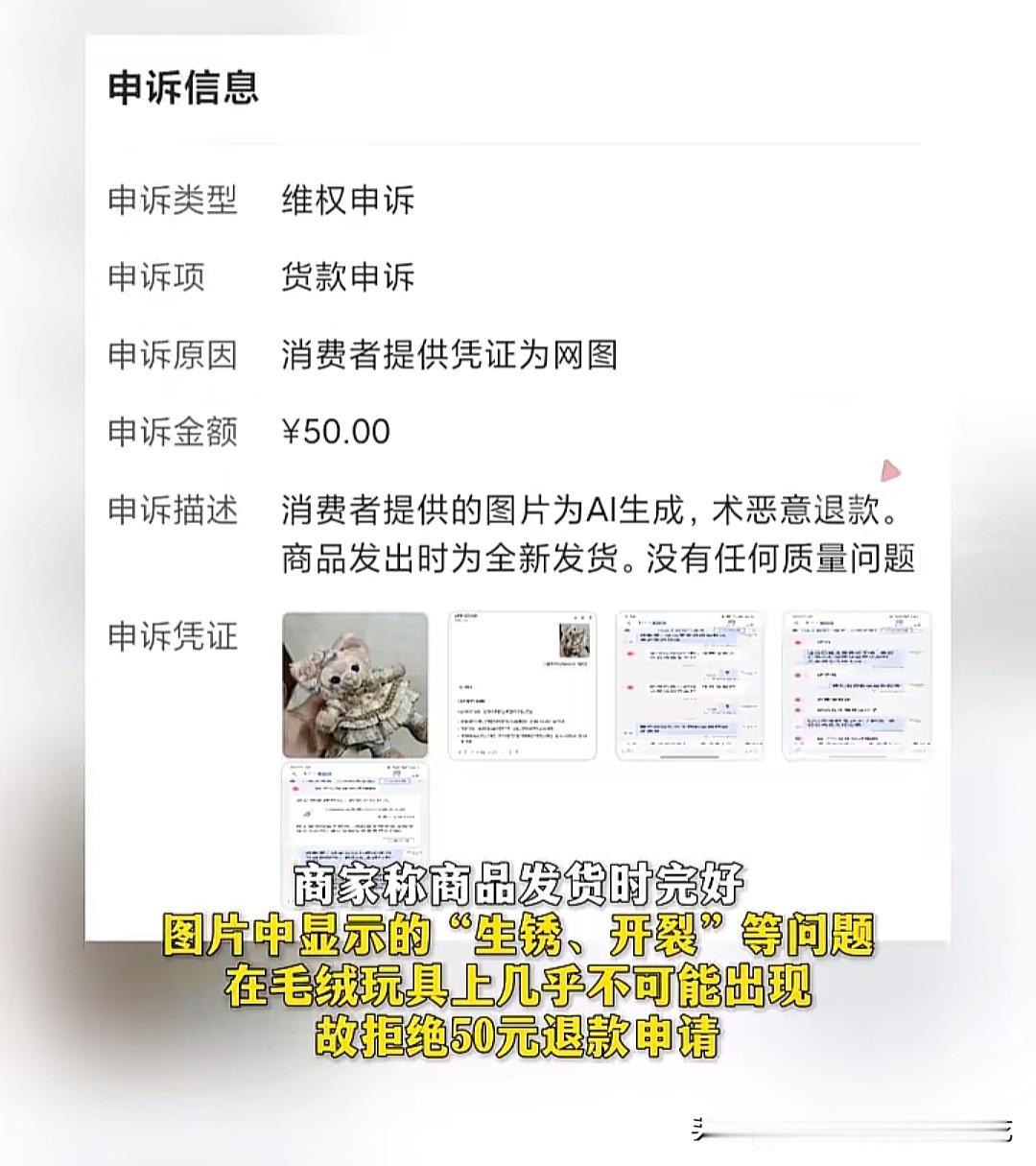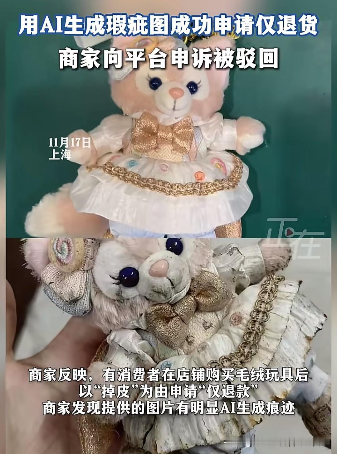 注意看,图一是卖家发的货,到了买家手里就是这般模样!这是买家利用AI生成的瑕疵图,毫无PS痕迹,系统秒退款,这样买家就可以不花一分钱白嫖电商平台所有的东西了! 这个世界上已经出现很多顾客薅羊毛的心理了,很多卖家商家都被逼的无路可走,不光是Ai的出现,甚至就因为一句顾客是上帝,很多顾客都飘得没边了,如果继续这样下去,实体店的春天就来了,大部电商主会转线下,那么对刚需的消费者而言就是沉痛的打击,以后很难买到便宜的东西了。 其实应该把每个人网购次数,退货率以及好评率全部显示出来,就跟显示卖家的销量,好评,差评带图评价一样。买卖应该是双向的,不能让一方无限膨胀。当然,AI退款用户应当永久封号,这点应该会有很多买家选择支持。
