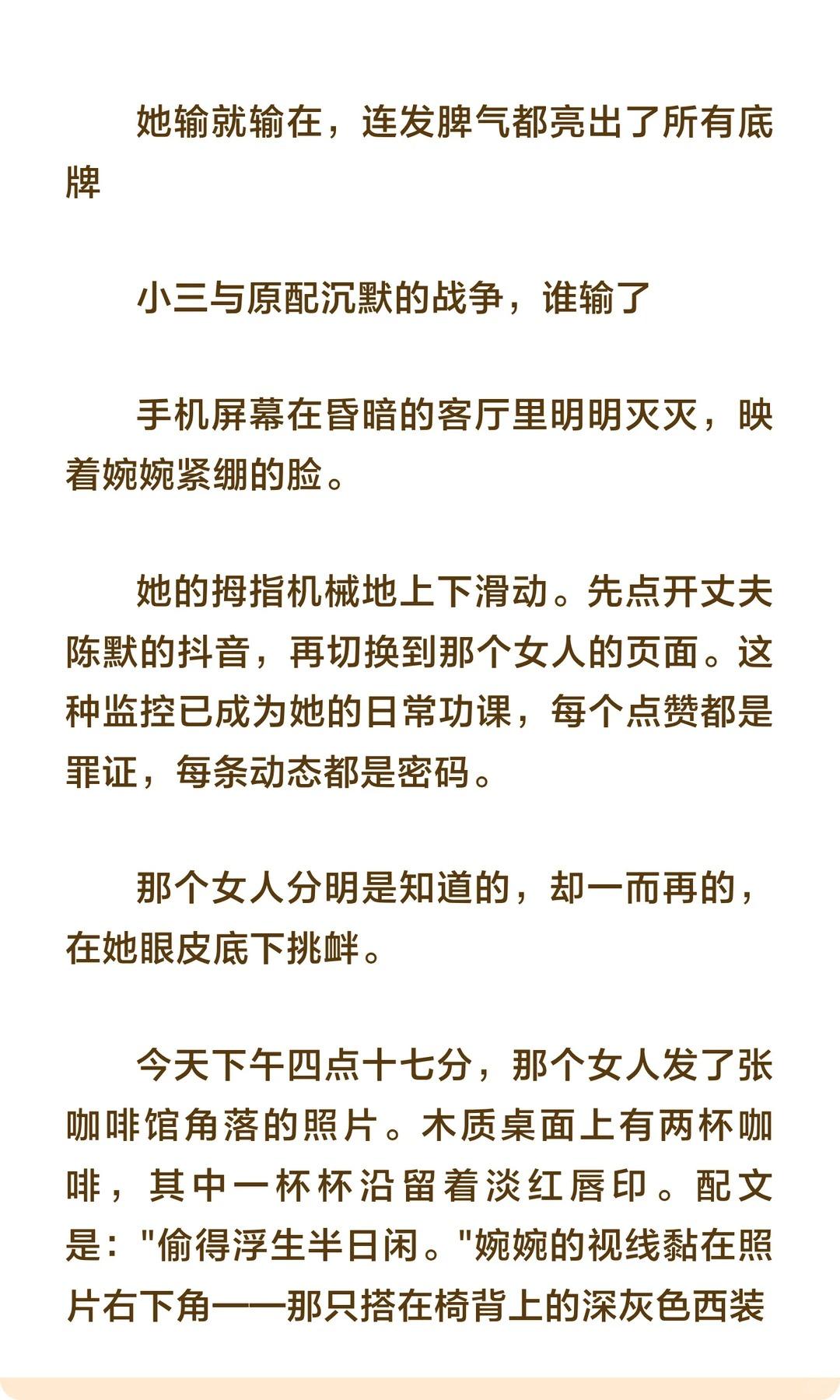 我是怎样跟嚣张的第三者谈判的。推开行政酒廊的门时,她正优雅地晃着香槟杯...