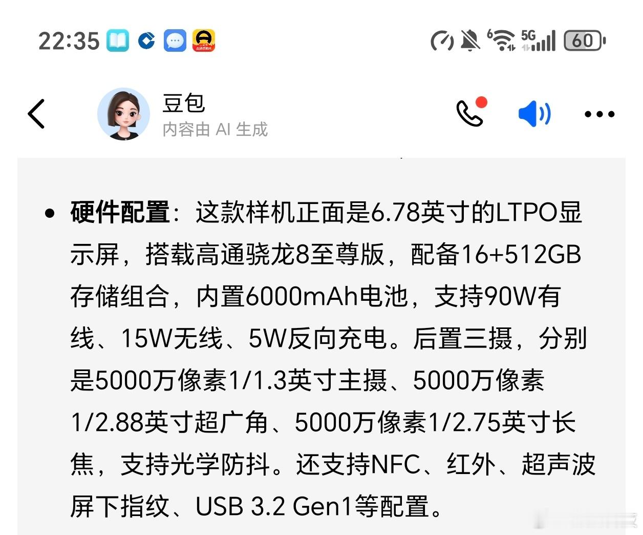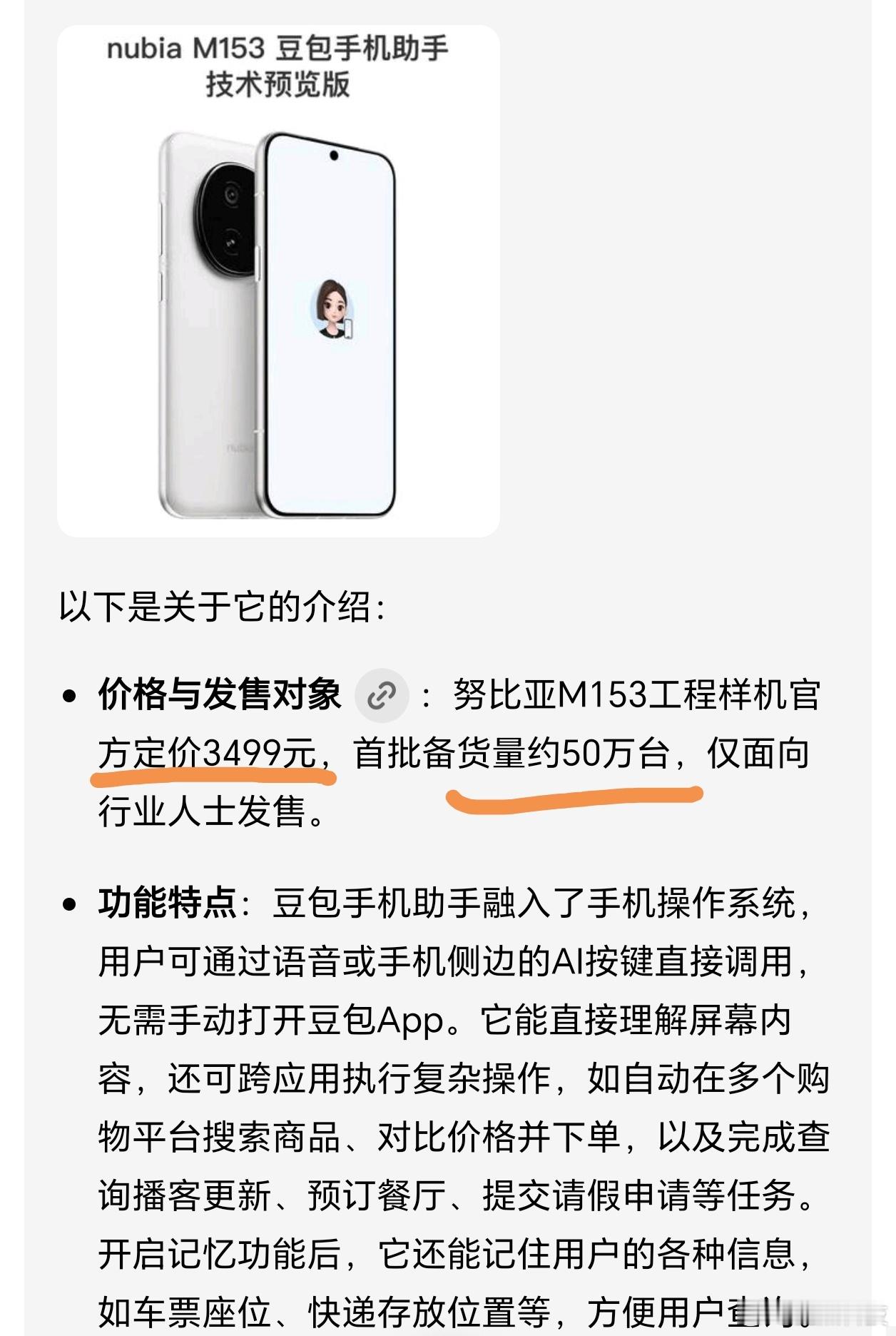 这款豆包手机看着很舒服。而且搭载了豆包手机助手。据说价格3499,首批的货量是50万台,拥有独立的AI按键,搭载了骁龙8至尊处理器、6000mA电池、90W有线充电,并且后置三主摄,还有超声波屏下指纹以及USB3.2 Gen1!你们觉得如何?仅面向行业人士发售。