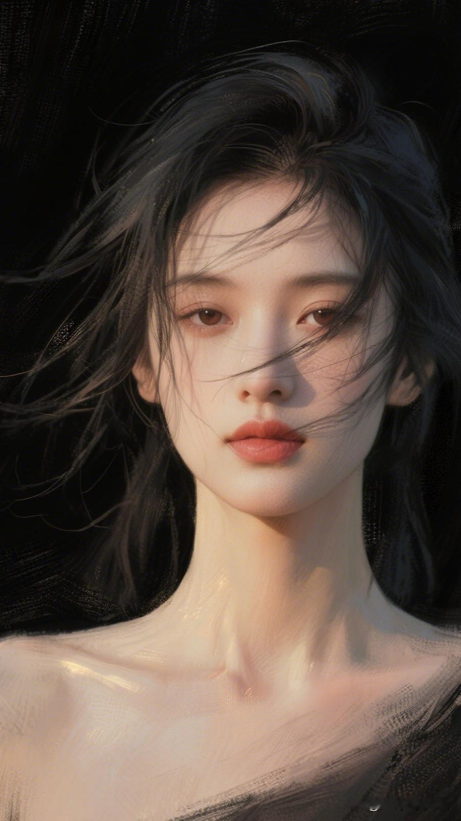 风起云涌间,美人如画。美人照怎么拍才好看 梦幻黑发少女,光影交织的神秘美感