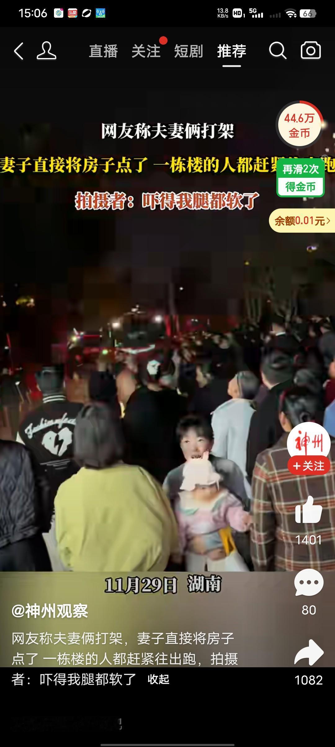 这样极端的人一旦有送进去的机会,就不要让她出来害人! 11月29日湖南拍摄者:吓得我腿都软了,小区有对夫妻吵架,妻子直接把房子给点了,一整座楼的人吓得赶紧往外跑。真不敢想真有这样的人吗?不知道她是怎么想的,她自己作都没事,但不能活祸害别人啊,你家点着了别人不管,别人的房子也被烧了怎么办?你赔吗?你赔得起吗? 就这样的人谁敢惹?这不是纯粹的害人吗?你们夫妻闹矛盾你们怎么打别人都管不了,你点房子会祸及池鱼的,如果你是独栋别人也无权干涉,但是你这样还害了整栋楼。 谁家娶了这样的女人是倒了八辈子霉,甚至也会害了下一代,有这样的母亲能教育出啥样的孩子可想而知了。