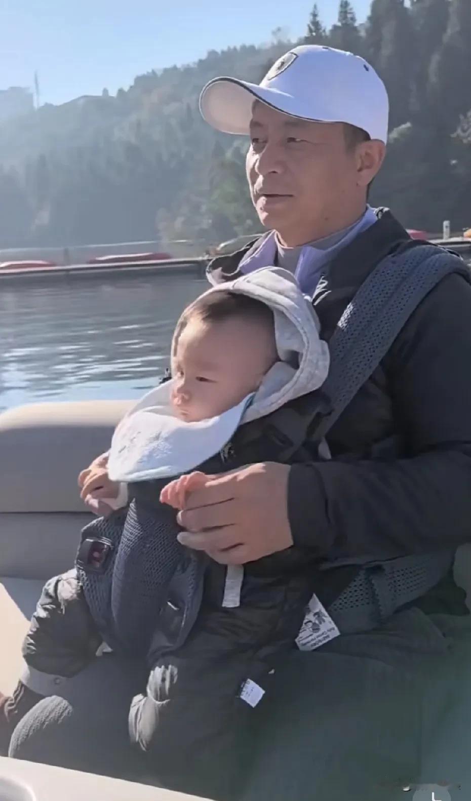 奥运冠军李大双现在是有儿万事足啊! 头发花白的他,胸前挂着宝宝背带,化身超级奶爸