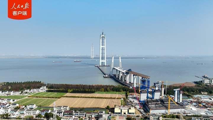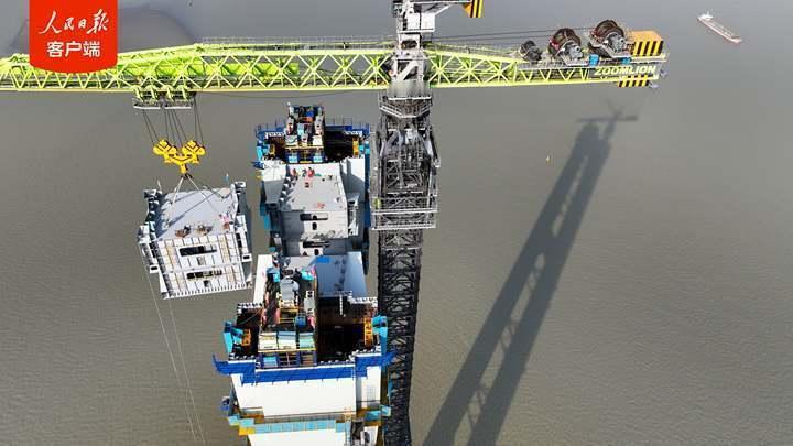 12月1日真是个值得纪念的日子,张靖皋长江大桥南航道桥南主塔上横梁完成“云端合龙