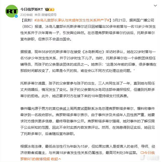 冰岛儿童部长托斯多蒂尔为什么没来,来的是司法部长,原因见图2