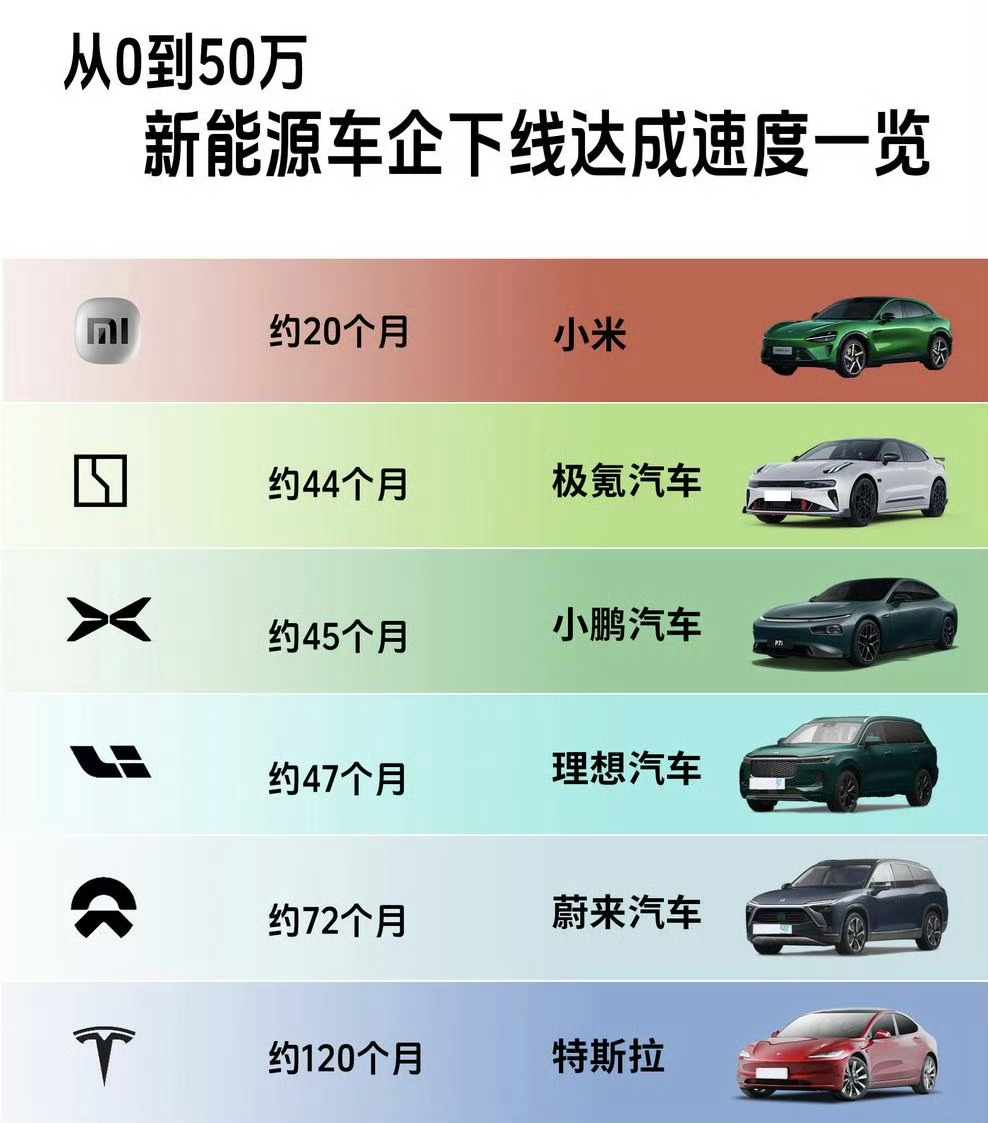 正式上市一年半,小米汽车交付 50 万台了。一周前,第 50 万台车才刚刚从工厂下线,下线量≈交付量了。