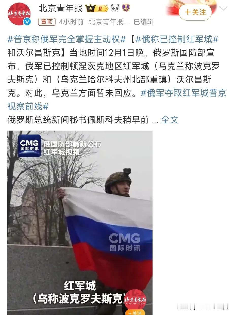 一劳永逸! 直指基辅! 俄罗斯的总攻开始了: 自11月30日起,俄罗斯发起了越来越猛烈的大规模攻击,所有无人机、导弹、炸弹等的数量级都是前所未有的! 俄军随即在12月1日宣布控制红军城——这是一个标志性事件,至此乌克兰东部大门彻底被打开,基辅再无障碍可守! 几乎可以预测: 俄罗斯现在的目的已不再是签署啰里啰嗦的和平协议了,而是一鼓作气直指基辅,彻底终结战争,一劳永逸! 总攻开始了……