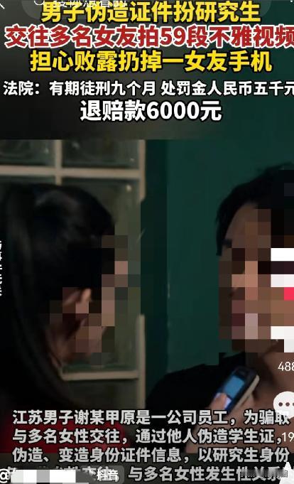河南濮阳,女子跟男友在宾馆休息时,发现男友手机上有和自己发生关系的视频。正用自己的手机拍照时,男友竟然将女子的手机抢走扔进酒店旁边的湖内。没有打捞起手机后,女子选择报警。这一报警可了不得,警方在男友的手机里发现59段跟不同女性发生关系的视频。 女子李某是在自媒体平台上认识了男子谢某。谢某自称是南京人,家庭背景显赫,“家里都是有头有脸的人”,自己研究生毕业,在一所高校担任辅导员。 李某最初只是抱着普通交友的心态,但随着聊天的深入,她逐渐被谢某的谈吐和气质吸引。 谢某温文尔雅,言语中总能带来安全感;又善于体贴关心,总是能在她心情低落时发来问候和鼓励。李某心想,这样的男人,外表俊朗,内在又细腻,几乎是自己理想中的伴侣。 经过几个月的交往,李某和谢某确认了恋爱关系。起初,二人的联系主要是线上聊天与视频通话,李某觉得这种形式还算可以接受。 然而,随着感情加深,李某对异地恋的不安全感也愈发强烈。她总会胡思乱想:谢某究竟是不是自己说的那样?他会不会在外面另有所图?这种焦虑让她越来越想要掌握对方的一切。 有一次,谢某如约来河南濮阳看她。李某心中既期待又紧张,每次见面都小心翼翼地观察谢某的一举一动。 那天,谢某洗澡时,李某偷偷拿起了谢某的手机,想看看是否如自己想象的那样。 屏幕亮起的瞬间,一股莫名的寒意涌上心头——手机里赫然有她与谢某发生关系的视频。李某心头猛地一沉,手指颤抖着,汗水渗湿了掌心。她一时间感到恐惧。 李某慌乱中用自己的手机拍下了几张视频界面的照片,想着留作证据,以防不测。然而,她的动作还是被谢某察觉。 谢某从浴室出来时,眉头微皱,眼神中闪过一丝冷意。他几步上前,手快如闪电地抢过李某的手机,李某吓得一声惊呼,却无法挽回。 谢某的动作干净利落,几乎带着一种冷漠的决绝感,他走到窗边,隔着玻璃,将李某的手机狠狠地扔进了湖里。 谢某低声说道:“手机不在了,就不要再管了。” 李某从酒店出来,整个人仍旧心有余悸,手脚冰凉,心跳如擂鼓。 经过短暂的犹豫,李某深吸一口气,鼓起勇气选择报警。 警察接到报案后,立刻介入调查。民警查看谢某的手机时,发现了令所有人震惊的事实:手机里竟存有多达59段与不同女性发生关系的视频。 这些视频不仅数量惊人,而且内容涉及多种情节。 一些视频被谢某仔细分类整理,甚至还标注时间、地点和女性身份;更令人不可思议的是,他曾在微信群里向朋友炫耀这些私密影像,完全没有丝毫羞耻感。 警方随即展开深入调查,逐渐揭开了谢某虚假身份背后的重重秘密。 李某在接受警方询问时,情绪一度失控。 民警耐心开导她,提醒她保存好一切报案证据,并配合调查。李某逐渐冷静下来,她明白,唯有法律才能为自己讨回公道,也防止更多女性受到伤害。 随着案件的深入,警方揭露了谢某的更多违法行为。他在相亲市场上曾以“研究生、高校辅导员”的光环备受追捧,但这一切只是伪装。 他伪造了事业单位的印章,将自己包装成体面的职业人士;同时,他持有两张不同身份信息的身份证件,切换人设,掩盖真实身份。 这些伪造行为,为案件增添了多项罪名。更严重的是,为了掩盖自己与李某的视频,谢某将李某的手机毁掉,这一行为在法律上已构成故意毁坏财物罪。 案件最终进入审理阶段。法院审理过程中,没有因为案件涉及男女朋友关系而轻易和稀泥,而是依法对各项犯罪行为进行了认定。 法庭上,检察官将谢某的伪造印章、变造身份证件以及故意毁坏财物的行为一一列出,并强调其在社交平台上通过视频炫耀、侵害多名女性隐私的严重性。 被告谢某在法庭上显得局促不安,神情复杂,但更多的是对无法掩饰的罪行感到无力。 最终,法院作出判决:谢某数罪并罚,被判处有期徒刑九个月,并处罚金五千元。判决生效的那一刻,李某长长地松了一口气。