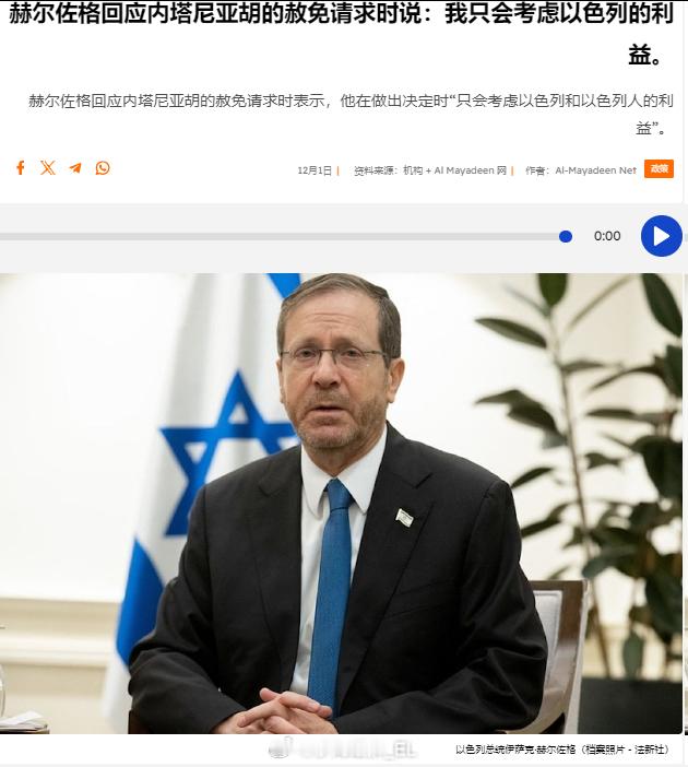 以色列总统赫尔佐格依然在赦免内塔尼亚胡的问题上模糊表态。
