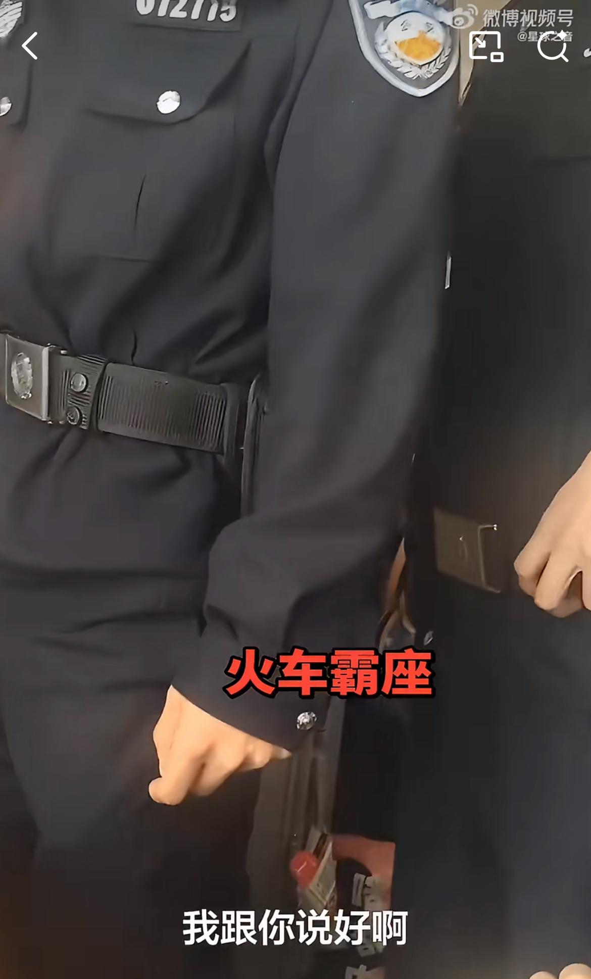 大妈真刚,霸坐还敢挑衅警察,连说你敢逮我吗?警察说她涉嫌霸坐,已经违法了。这里不适合给她做普法教育,占别人座位成年人都知道不对。只要三次警告,拒绝配合的,可以立马拿人,用法律手段约束,而不是软绵绵讲道理,他们听不进去这些的,他们怕铁拳。