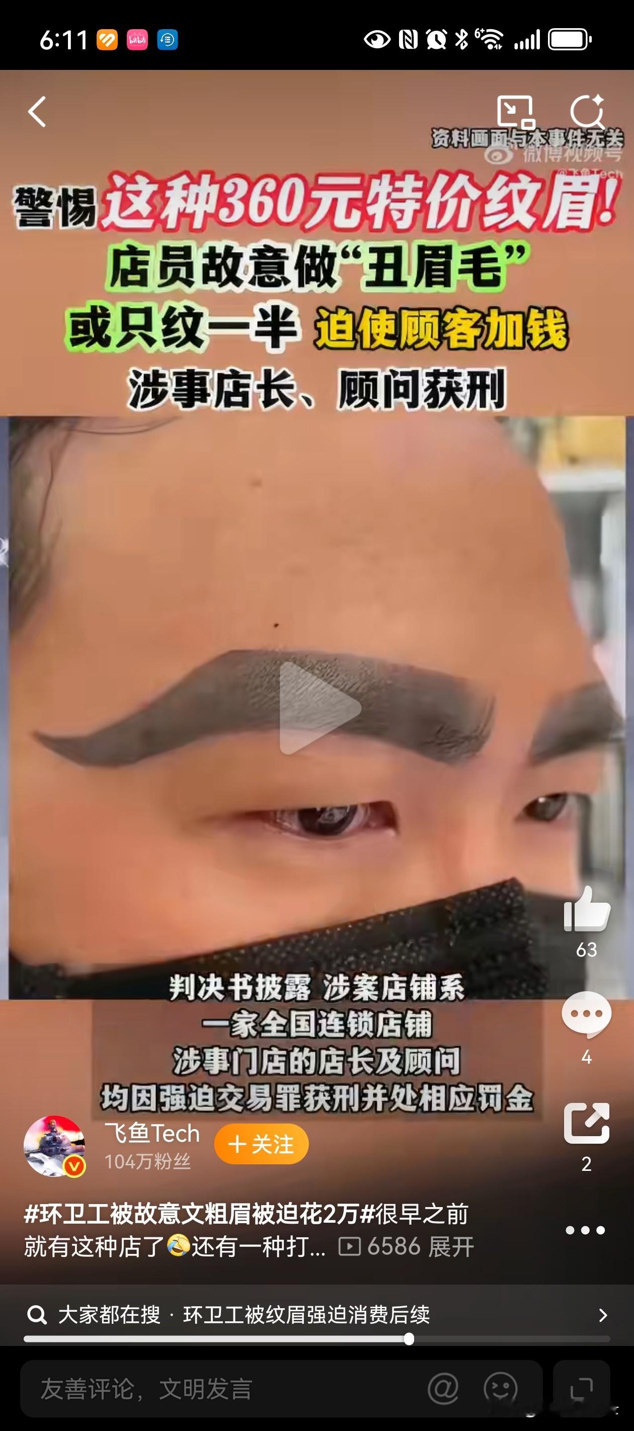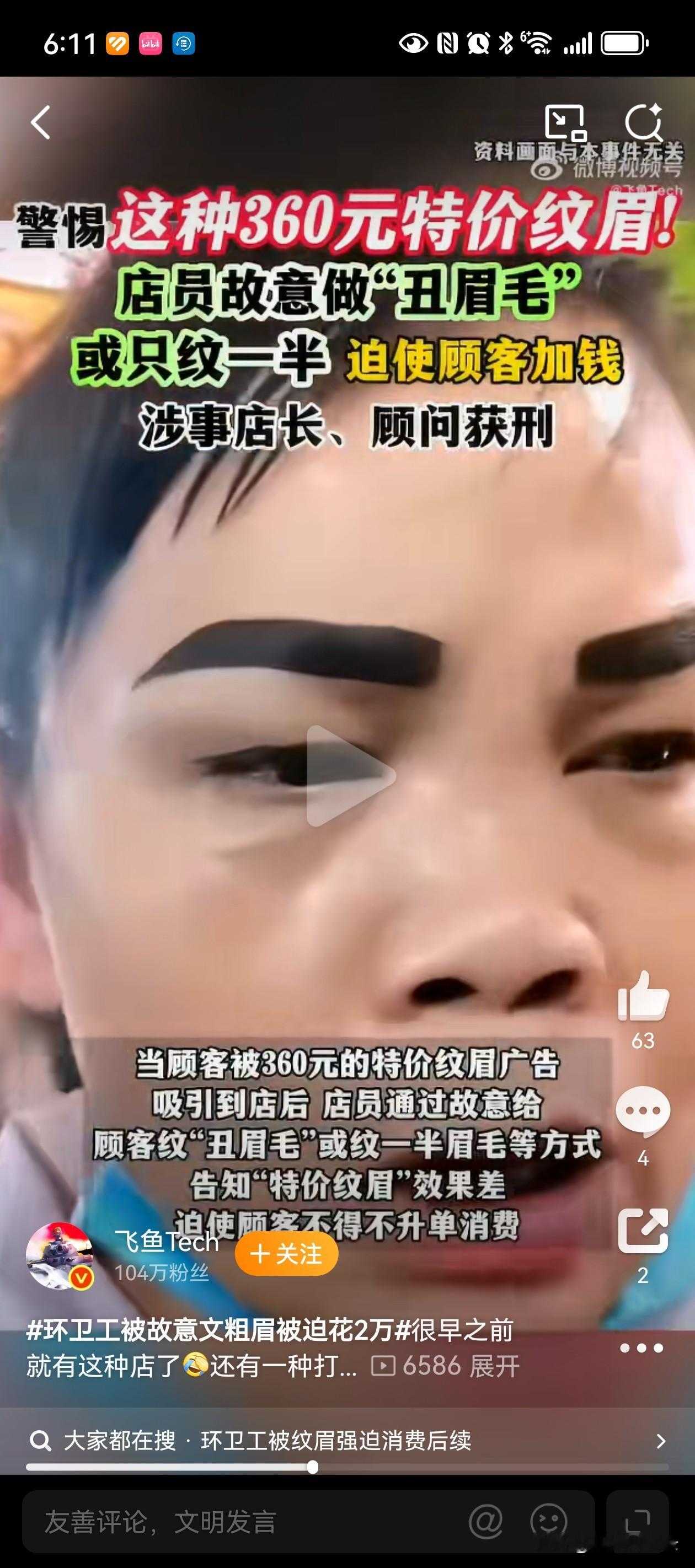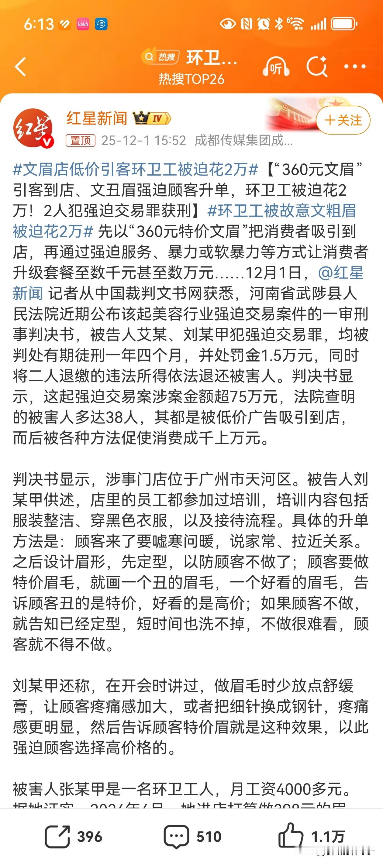 “连环卫工人都坑,这是人干的事?”——广东广州天河区这个热搜最有意思的地方在于,我连看几家媒体报道,都没看到这家没良心的美容店到底叫啥名字。。。