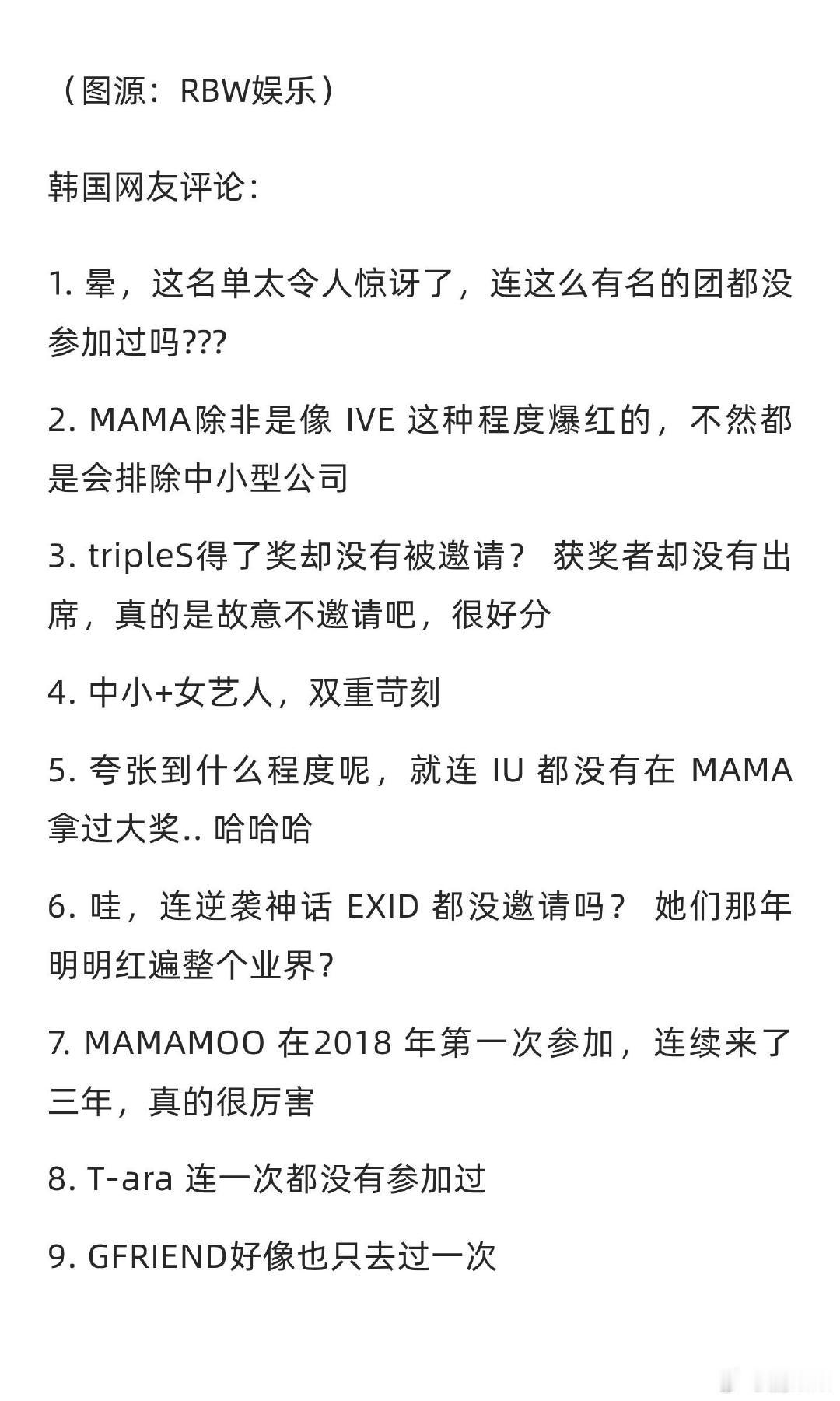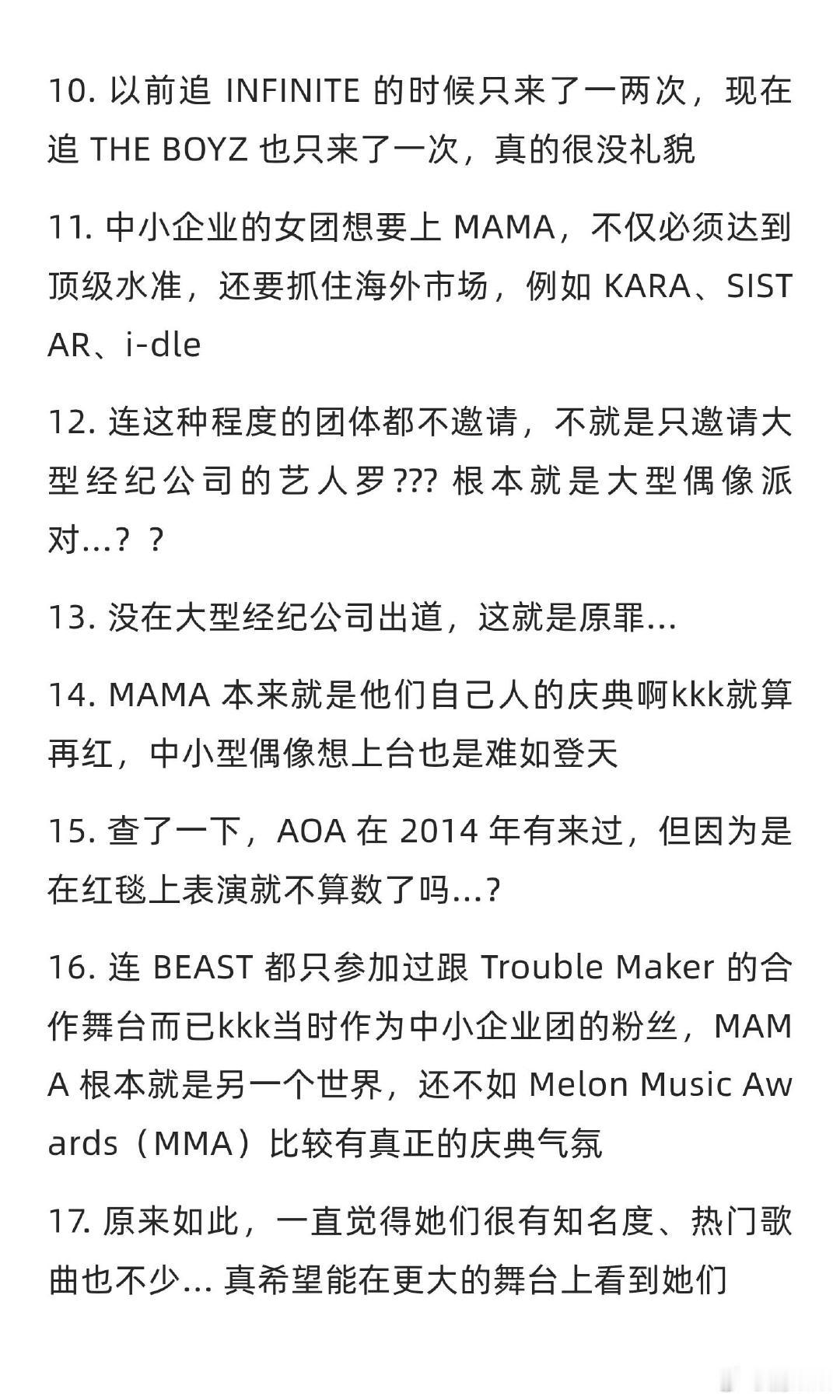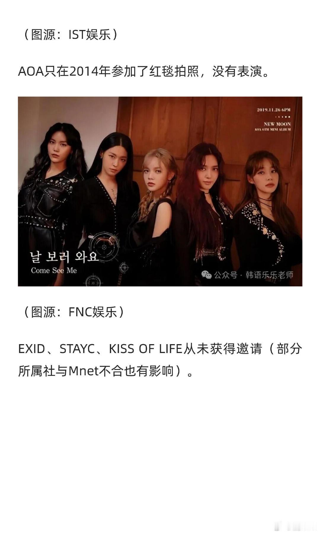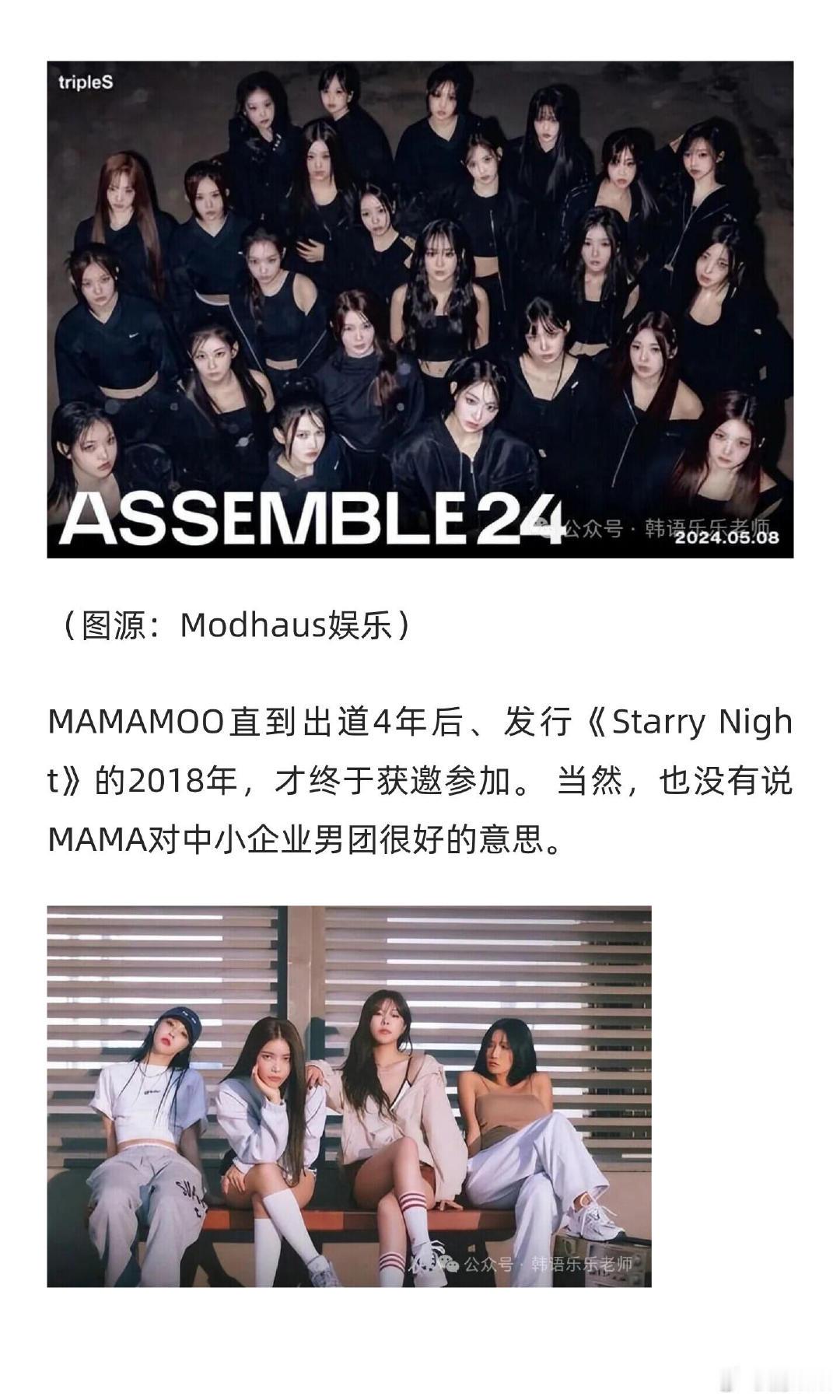 没参加过MAMA的女团中小企女团想上MAMA,得先打穿本土市场再拿下海外,还要看公司和平台关系,这条件叠buff 一样。没有在MAMA表演过的女团
