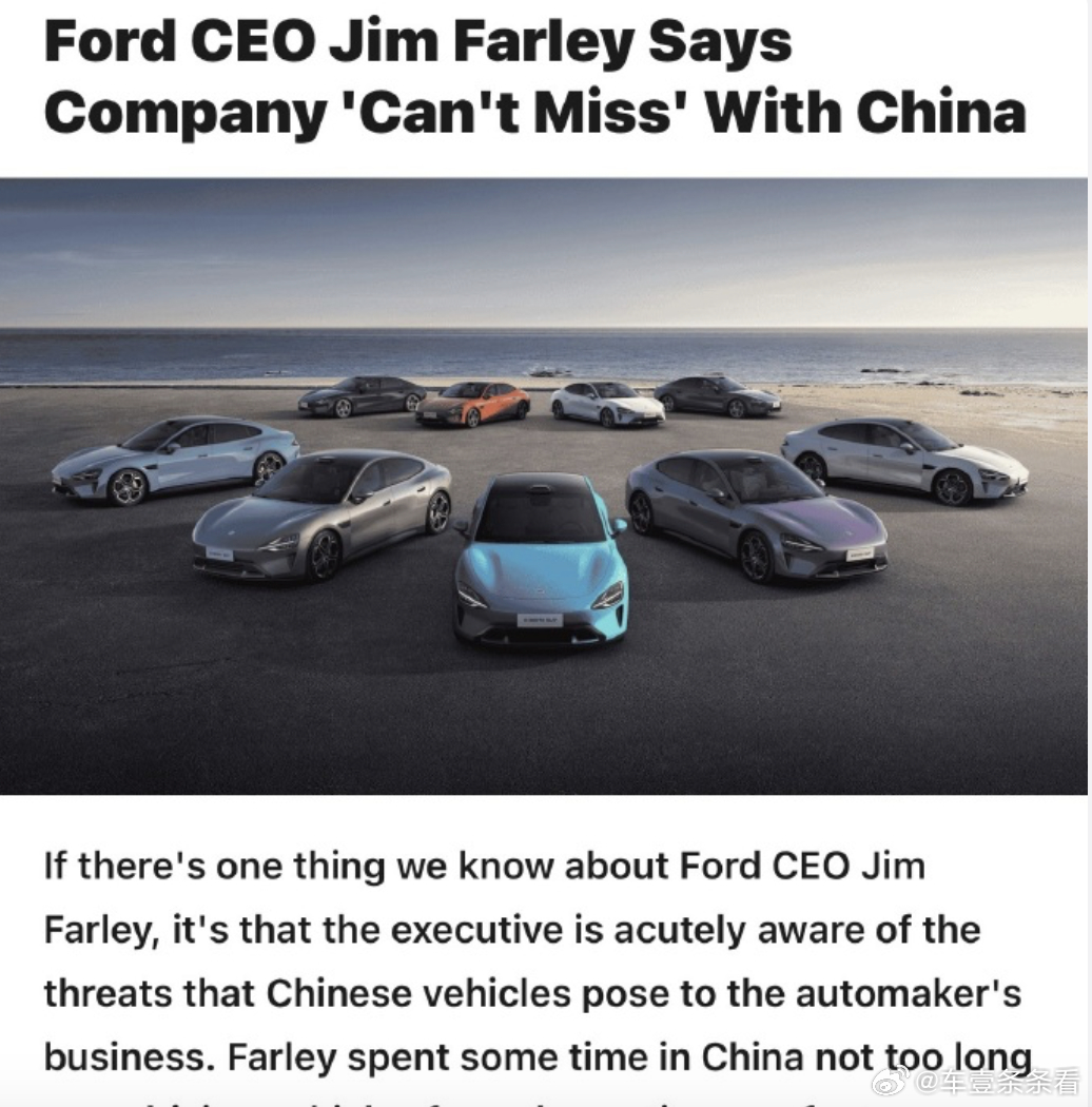 被中国技术“震撼”,福特CEO:绝不能再失中国市场!12月2日消息,据外媒报道