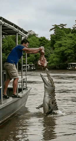 胆子真大[捂脸][捂脸] 惊掉下巴的奇葩事来啦! 有人喂鳄鱼时竟还去挑逗,这操作简直迷之自信。鳄鱼哪管什么肉,直接连人带肉咬住不松口,这是要人命或断胳膊的节奏啊!勇气虽可嘉,但这种拿命开玩笑的行为真不可取。生命只有一次,别为了刺激丢了安全,你敢这么冒险吗?