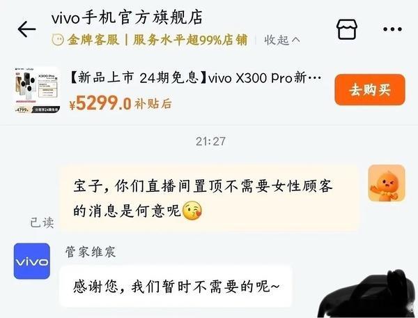 vivo最新回应客服乳女正义,说是误触不过vivo受众大多数确实是女客户吧,难道vivo和三丽鸥联名是为了卖给男客户吗?这下不知道女客户以后还会不会买了。