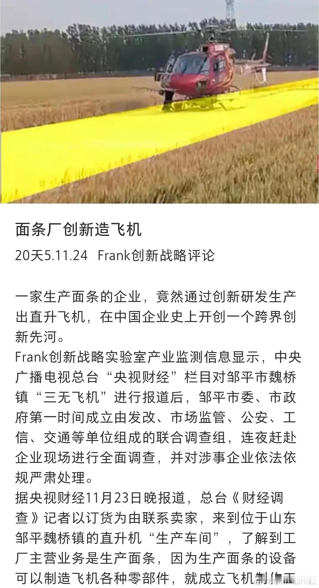 面条厂自己生产飞机本身是生产面条的,后来老板觉得外面买的面条机都不好用,就买了机床自己加工面条机,然后发现这个机器也能造飞机,,我的妈