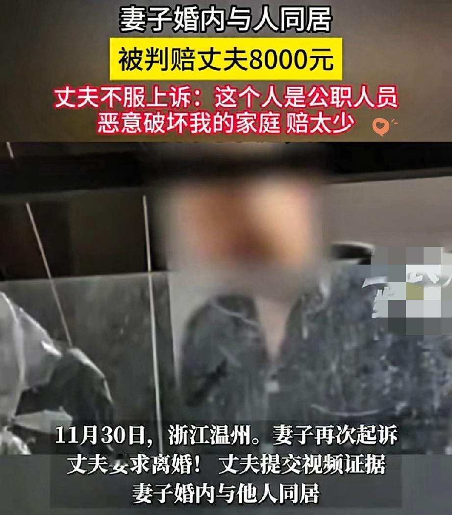婚内不忠赔8千? 这样的惩戒,根本护不住婚姻里的忠诚 温州这起离婚案,真的戳中了很多人的痛点。 妻子婚内不忠被丈夫抓了实锤,先提离婚不成,分居一年又二次起诉,最后法院判离,过错方只赔8千块,换谁都难咽下这口气。 婚姻里的忠诚从不是空话,是该被敬畏的底线,可8千块的赔偿,连对受害者的精神慰藉都不够,更别说震慑过错行为。 法律虽认可无过错方的索赔权,但过低的赔偿数额,其实是弱化了对婚姻背叛的惩戒力度,也寒了认真对待婚姻的人的心。 丈夫的委屈不是小题大做,是想为自己的真心讨个公道,婚姻里的错,就该有匹配的代价,不然忠诚的分量太轻。 你觉得多少赔偿能真正体现对婚内过错的惩戒?