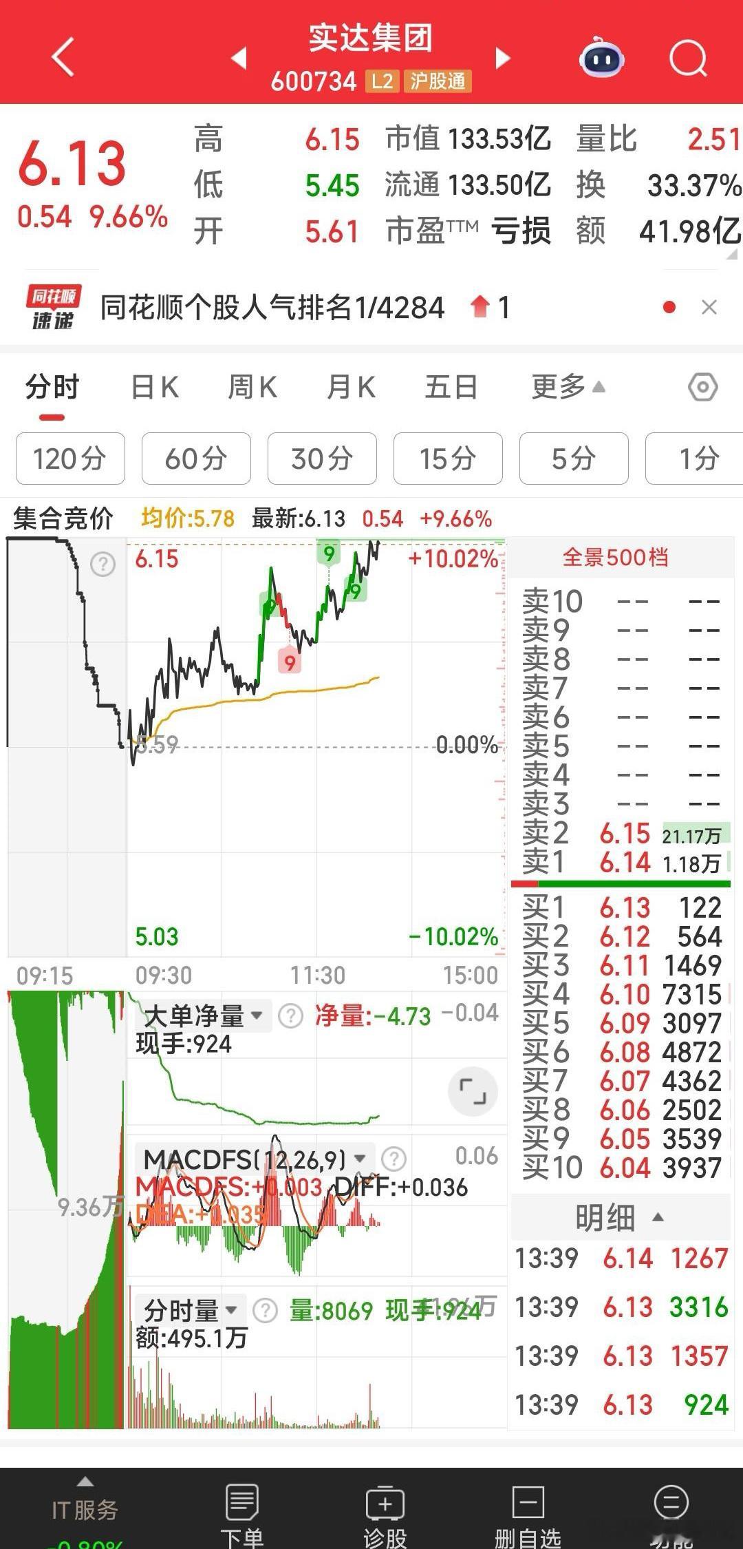 好样的,实达集团再涨2分钱就二连板过前高了,后面的戏就更好看了,5.6元时你干了吗?