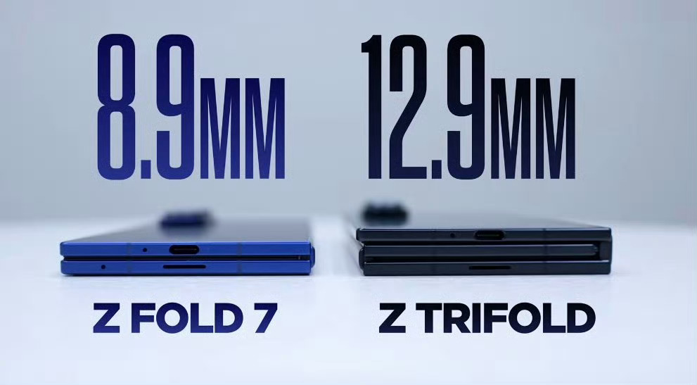 三星首款三折叠手机发布三星的三折叠采用了双内折设计对比华为,在中间多了一块外屏但少了一个大折叠形态重量相差不大,厚度还是华为略占优势这个市场终于有新玩家了,你更喜欢哪个设计?