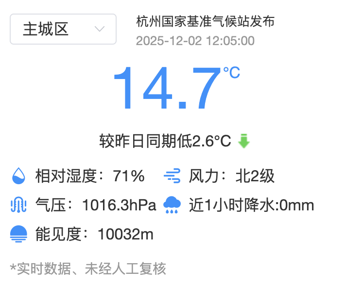 虽然寒潮到了杭州,已经减弱为冷空气,降温影响也不及北方猛烈,但相较于前期的温暖天气,杭州今日下午起也将会出现明显的冷暖反差,叠加北风带来的风寒效应,体感温度或比实际气温还要低。