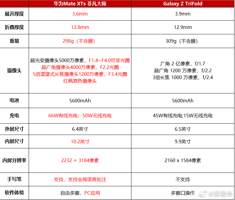 #三星首款三折叠手机发布# 后,很多朋友问我,同样是三折叠屏手机,买哪一款更合适。我推荐朋友买华为三折叠屏手机,一是因为硬件配置更高;二是生态更成熟。#三星首款三折叠手机比华为晚一年# 与传统折叠屏一样,影响三折叠屏手机体验的关键是软件适配。在软件适配方面,华为三折叠屏比三星早一年,各项适配更成熟一些。