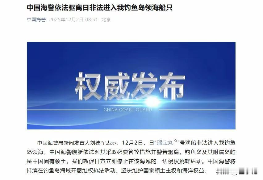 北京时间12月2日凌晨1时25分, 钓鱼岛海域的宁静被打破! 两艘日本船只悄然现身, 其中包括惯犯“瑞宝丸”号渔船与海上安保厅巡逻艇。 中国海警迅速响应, 两艘搭载机关炮的海警船即刻奔赴现场, 通过国际频道持续喊话警告, 以专业战术形成拦截态势! 面对中方硬核管控, 日方船只最终被迫驶离, 中国海警以实际行动筑牢领土主权防线, 彰显“寸土不让”的坚定决心!