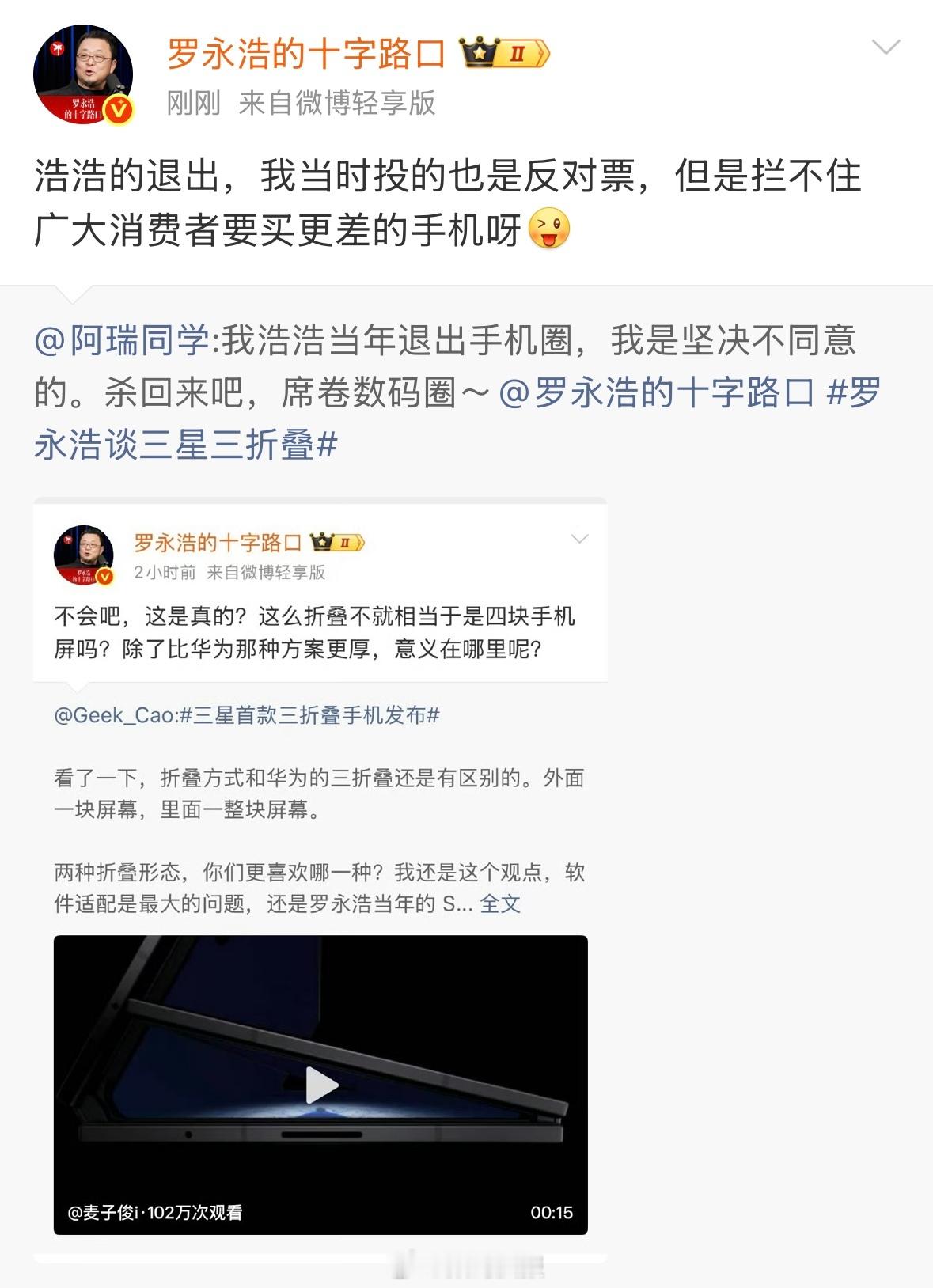 罗永浩回应退出手机圈:拦不住广大消费者要买更差的手机。