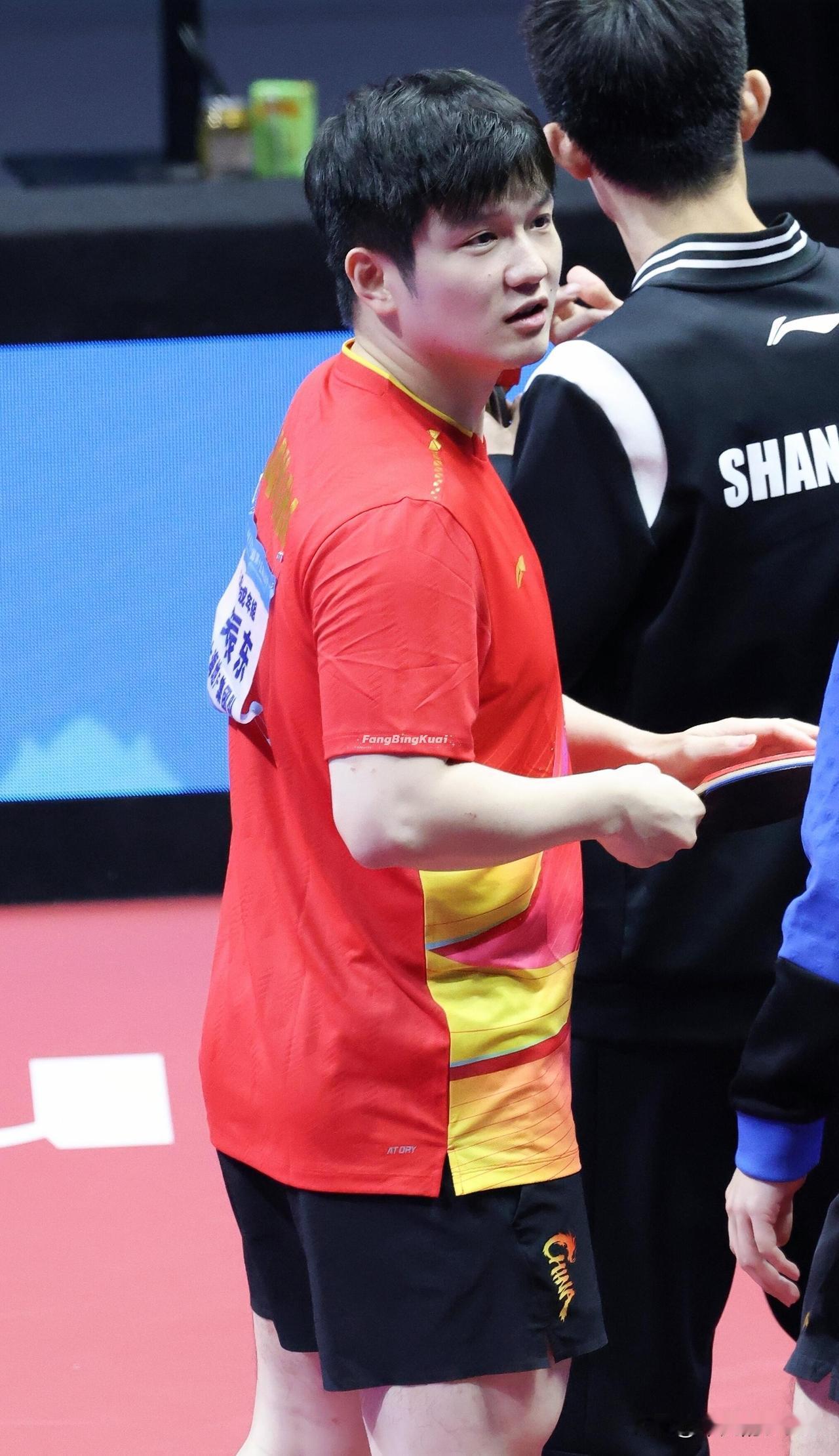 当你看了樊振东这张巴黎奥运会决赛前的谈话照片时,或许大家就会明白东东为什么会选择退出世界排名,远赴德国俱乐部打球了。 巴黎奥运会乒乓球项目男子单打决赛前,刘国梁、王皓和秦志戬都把希望寄托在了东东身上,因为他们已指望不上其他人,王楚钦很早就被淘汰了。 当夺冠的所有压力都落在樊振东身上时,他别无选择,只能迎难而上,但东东的后勤保障工作却是上海队在负责。 图中,樊振东像个犯了错的小孩,正在接受家长们的训话,那时的他肯定很无助吧。 我还发现一个亮点,陈梦当时正在同一个场馆拉练,她望向樊振东,仿佛在说些什么。 樊振东称“去欧洲是为了远离不好的事”,他第一次亮相德甲联赛时,现场观众都热情地欢迎他,东东脸上露出了灿烂的笑容。 樊振东只想专心打乒乓球,期待他12月份的德甲比赛。 对此,大家怎么看呢?