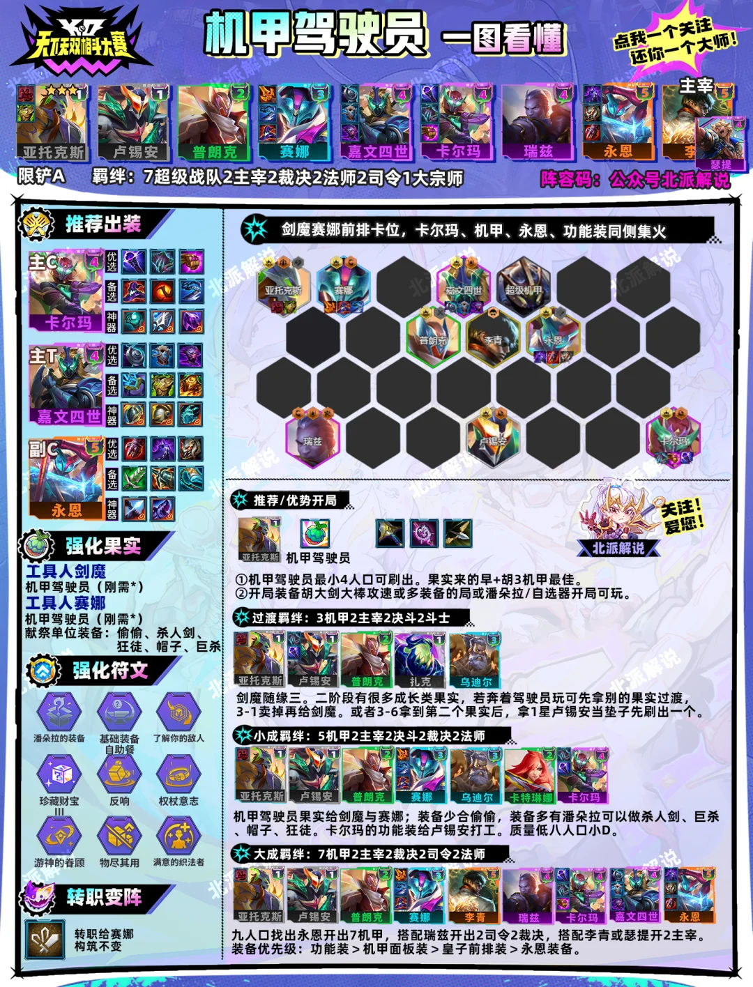组成羁绊:7超级战队2主宰2裁决2法师2司令1大宗师