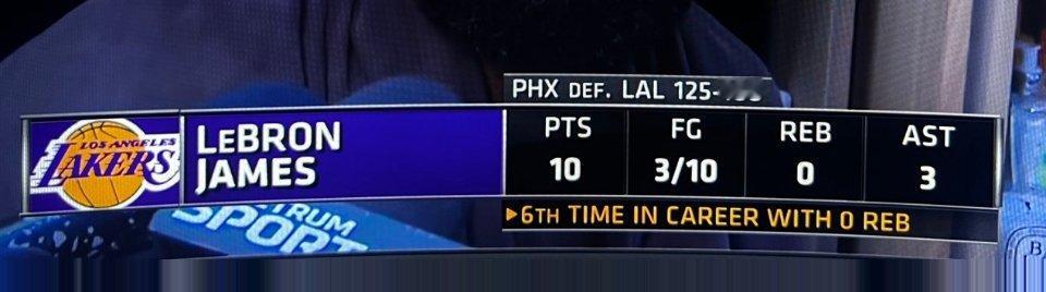 不多不少,10分整好!詹姆斯就拿10分,湖人即便今天输了,黑子也气的吃不下饭去!