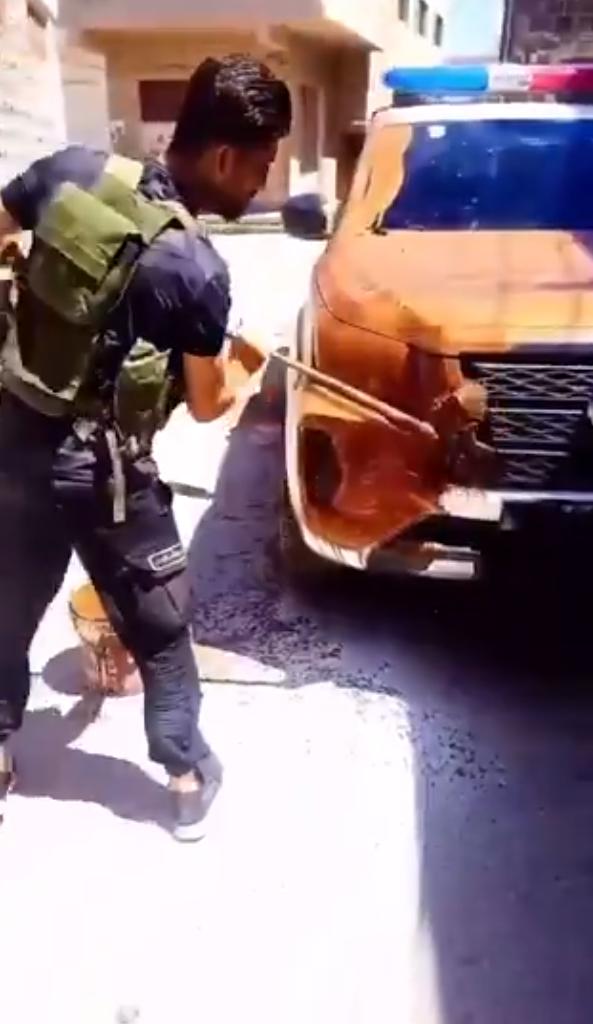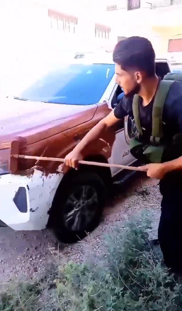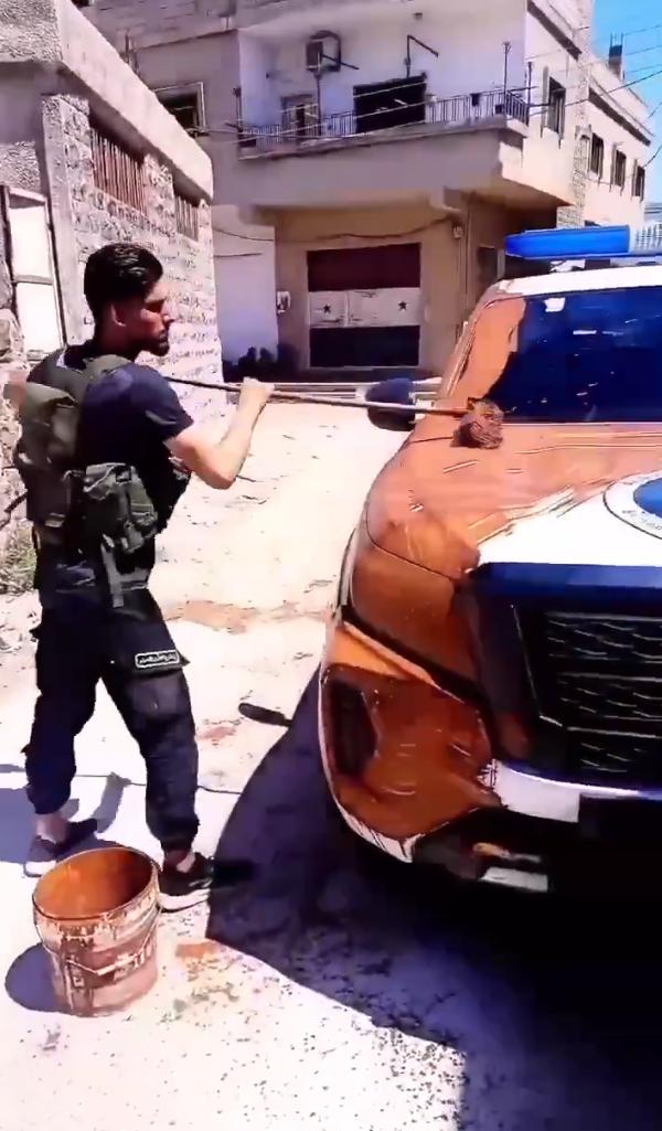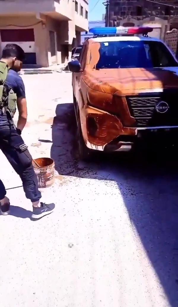 一帖子批评叙利亚总安全部队在 2025 年袭击阿拉维派和德鲁兹派社区期间,涉嫌用泥土色漆伪装车辆,如视频所示人员正在伪装巡逻车;同时,该帖子还嘲讽他们在 2025 年 11 月 28 日以色列袭击贝特金恩(造成 13 人死亡)期间的不作为。