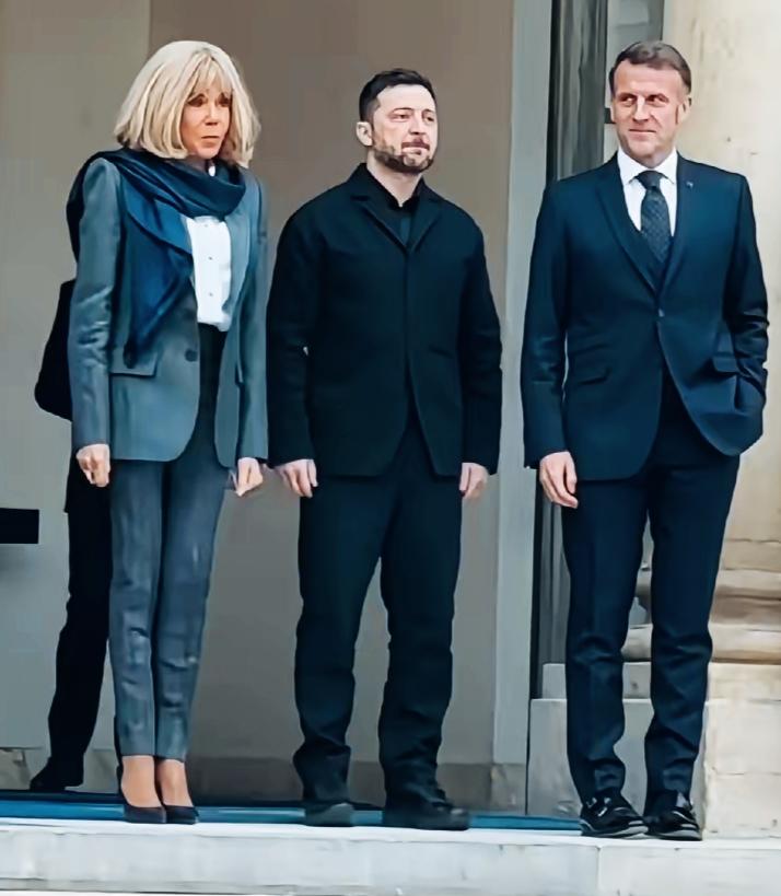 泽连斯基和马克龙妻子挺默契啊! 两人脸上都带有笑意! 两人的站姿也很一致啊! 马