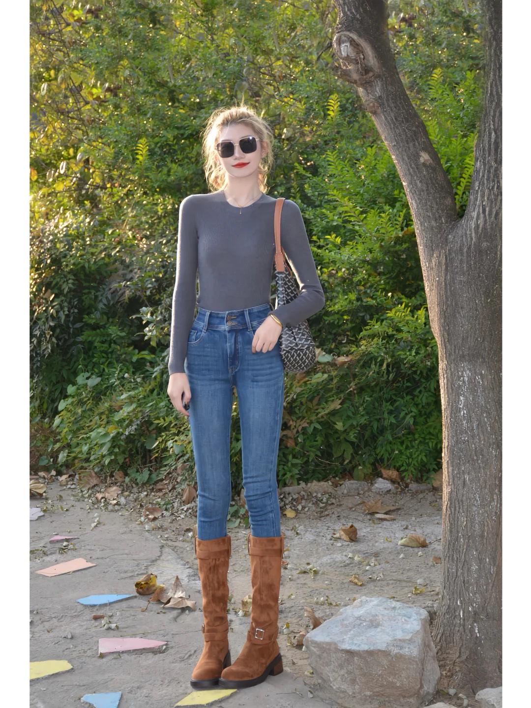 最多喜欢的就是牛仔裤搭配靴子 超级好看高腰牛仔裤穿搭 女牛仔裤穿搭 日常牛仔裤