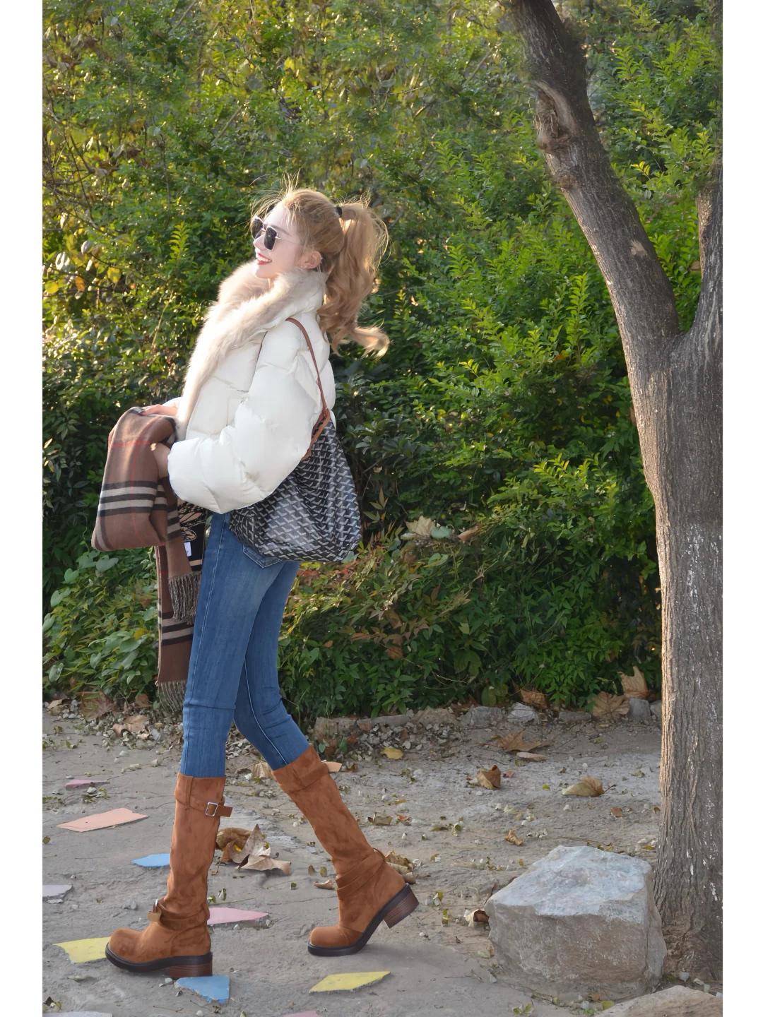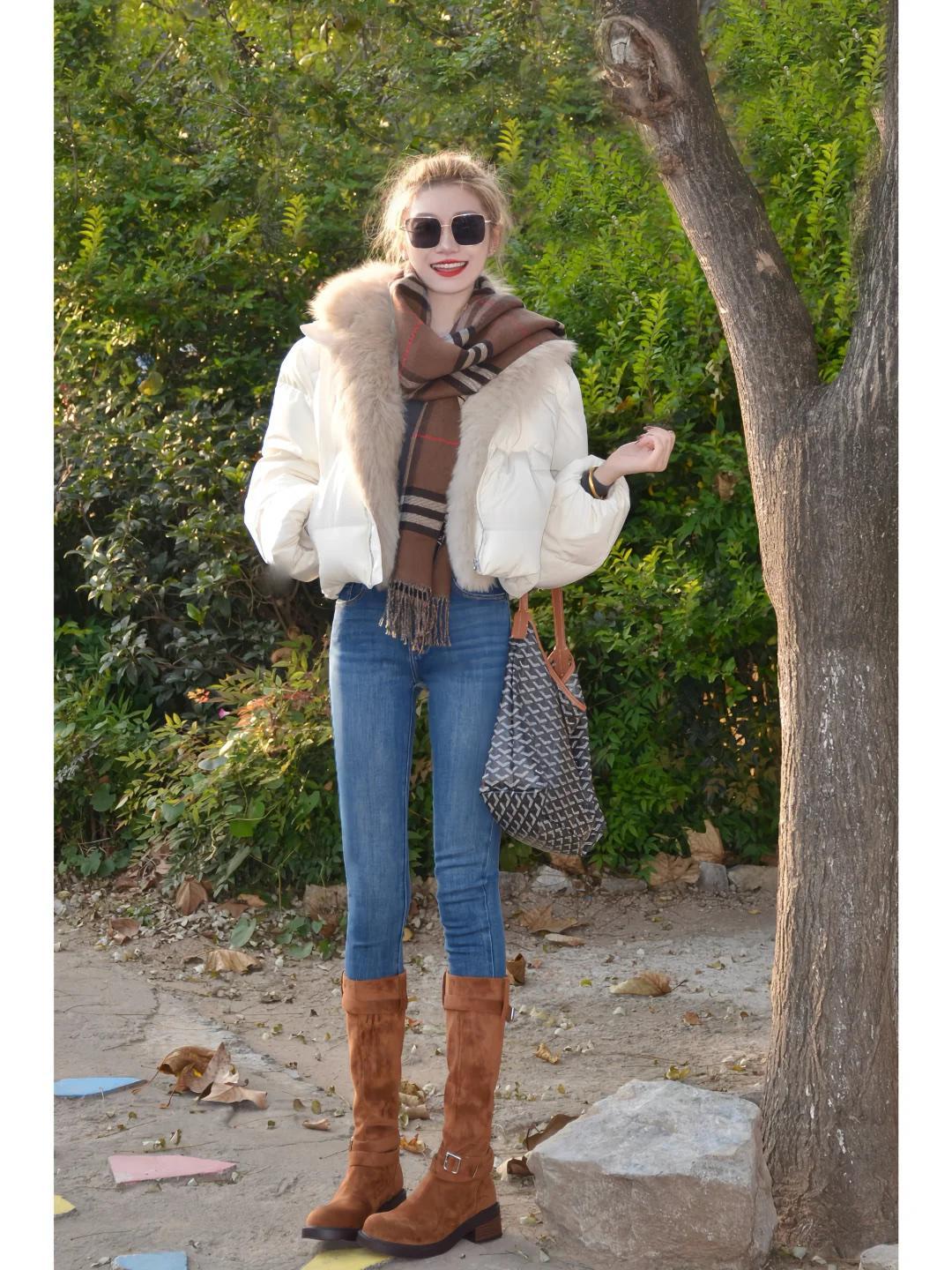 棕色靴子搭配白色小脚裤棕色高跟鞋穿搭 棕色短靴高跟鞋 棕色绒面靴 棕色长靴 秋冬