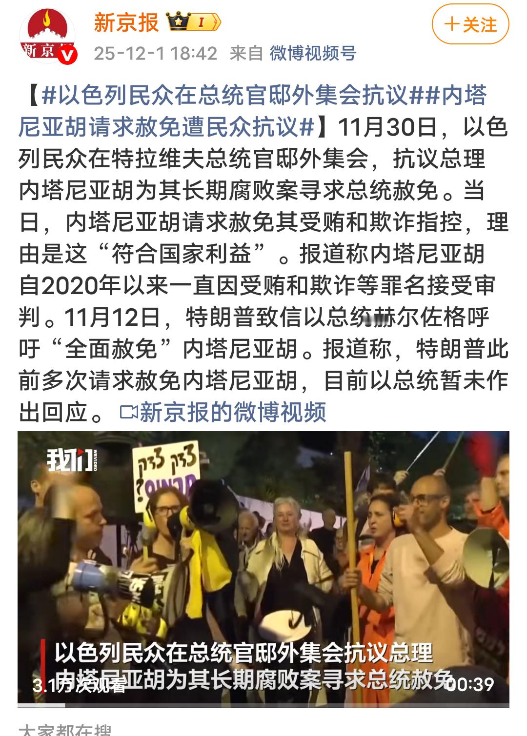 内塔尼亚胡请求赦免遭民众抗议自己干了啥,还好意思赦免?不但屠杀巴基斯坦人民,还贪污,真是想的太好了,就看以色列司法没顶住不了
