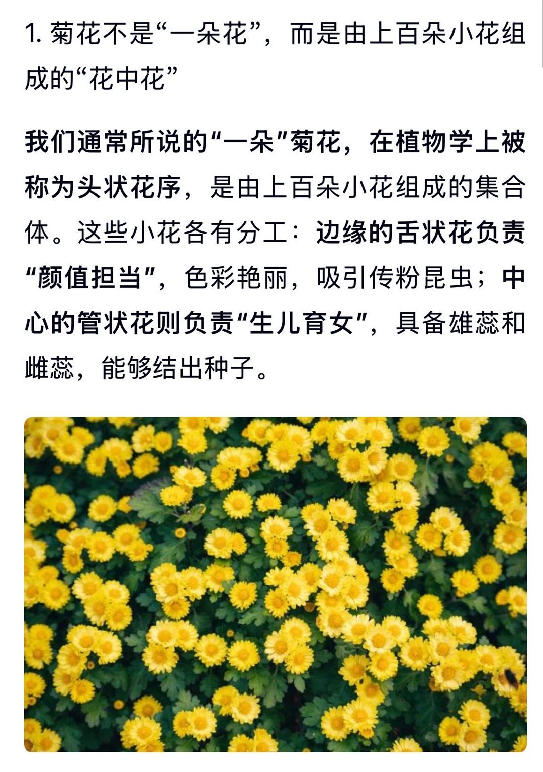 菊花每一片花瓣都是一朵小花以为一朵花其实是一大家子菊 谁懂啊!赏菊竟是围观“小花团战”~ 从边缘到花心全是独立个体,分工明确、默契十足,自然的协作美学太绝了~