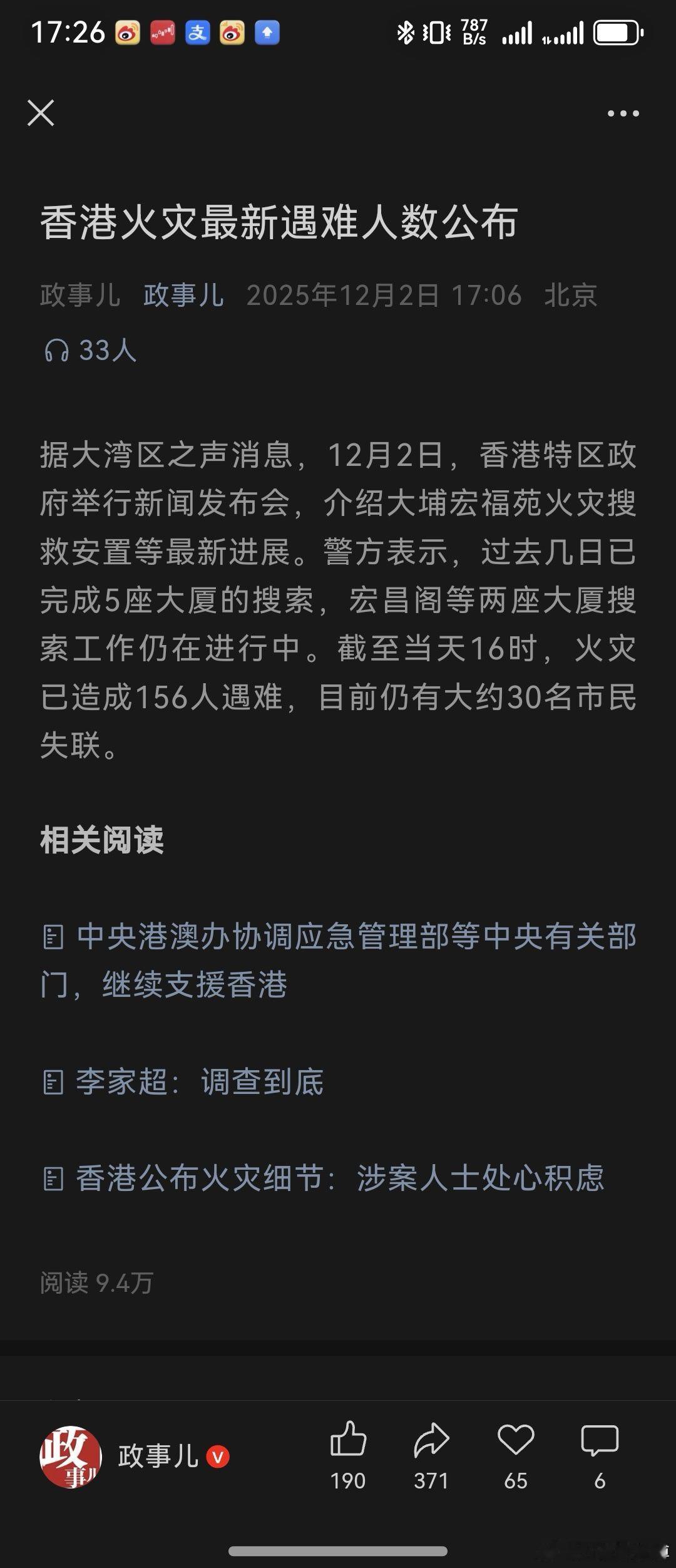 香港这把大火,真的没想到会这么惨烈。。。最新的遇难人数已经156人,并且还有约3