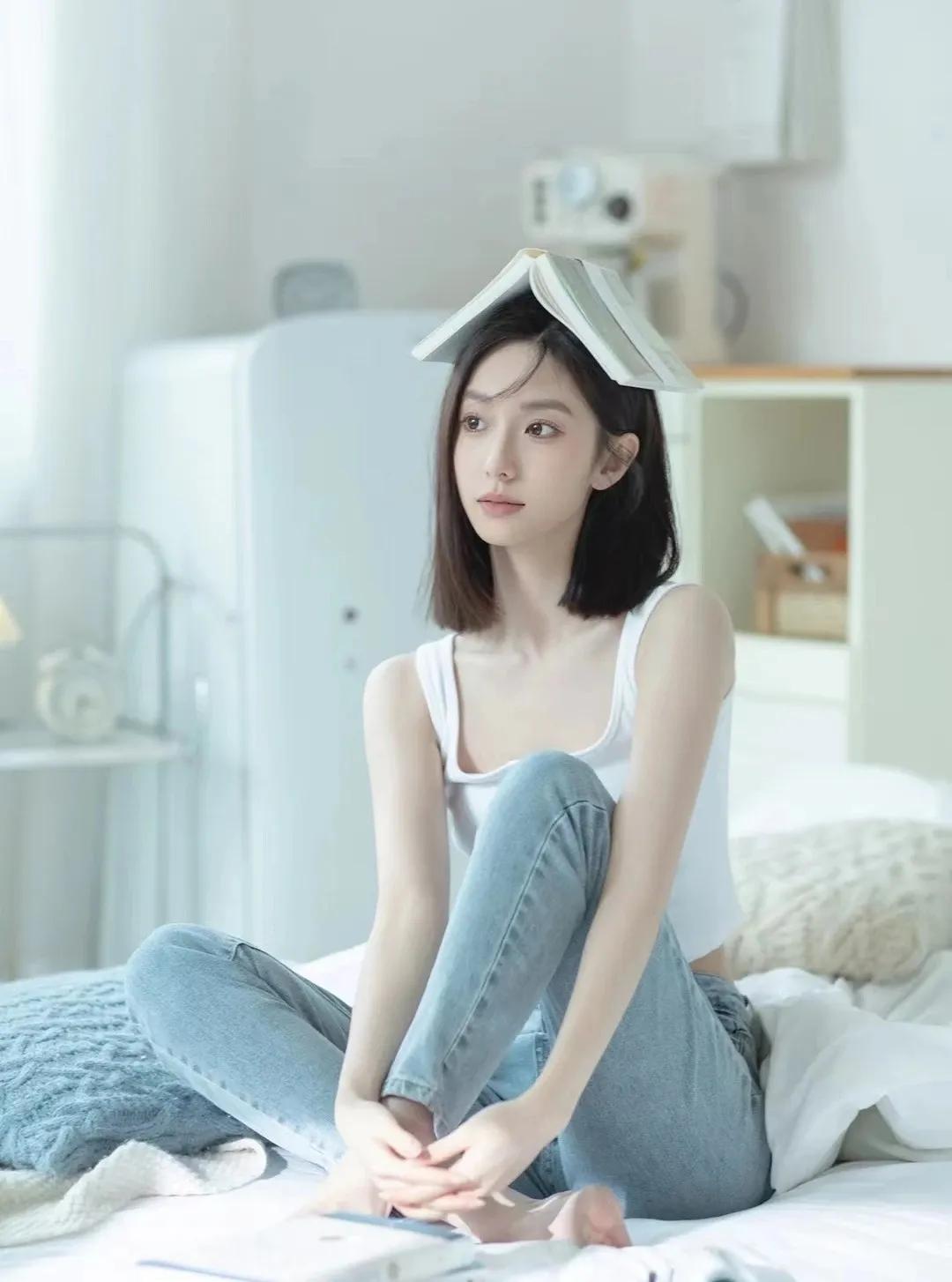 秋日暖阳下,优雅女子倚石阶,落叶飘零间,尽显温柔与浪漫。