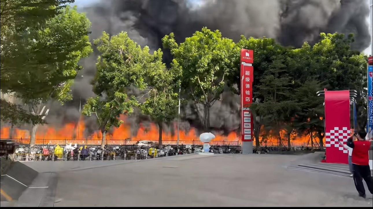 火情实在是太严重了,把地铁口的指示牌都烧没了,希望没有人员伤亡。广州沙园地铁站附