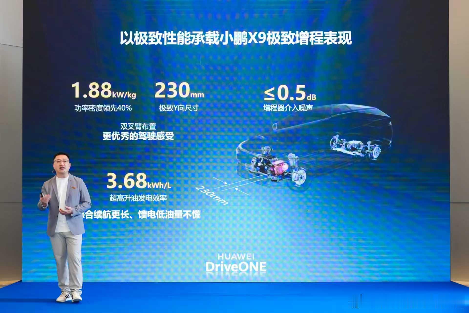与华为合作小鹏X9增程版确实亮点挺多比如首发搭载了华为DriveONE全栈高集成高压油冷发电机,高集成度让体积更小尤其是横向尺寸,在搭载63.3kWh超快充磷酸铁锂大电池的情况下,X9前舱还能塞得下增程器和发电机,以及有1.88kW/kg持续发电功率密度和85kW峰值输出功率感觉现在增程式混动上电池包容量上大家也快卷到尽头了,马上要开始卷增程器、发电效率这个新赛道了小鹏X9联手华为推出下一代增程发电机
