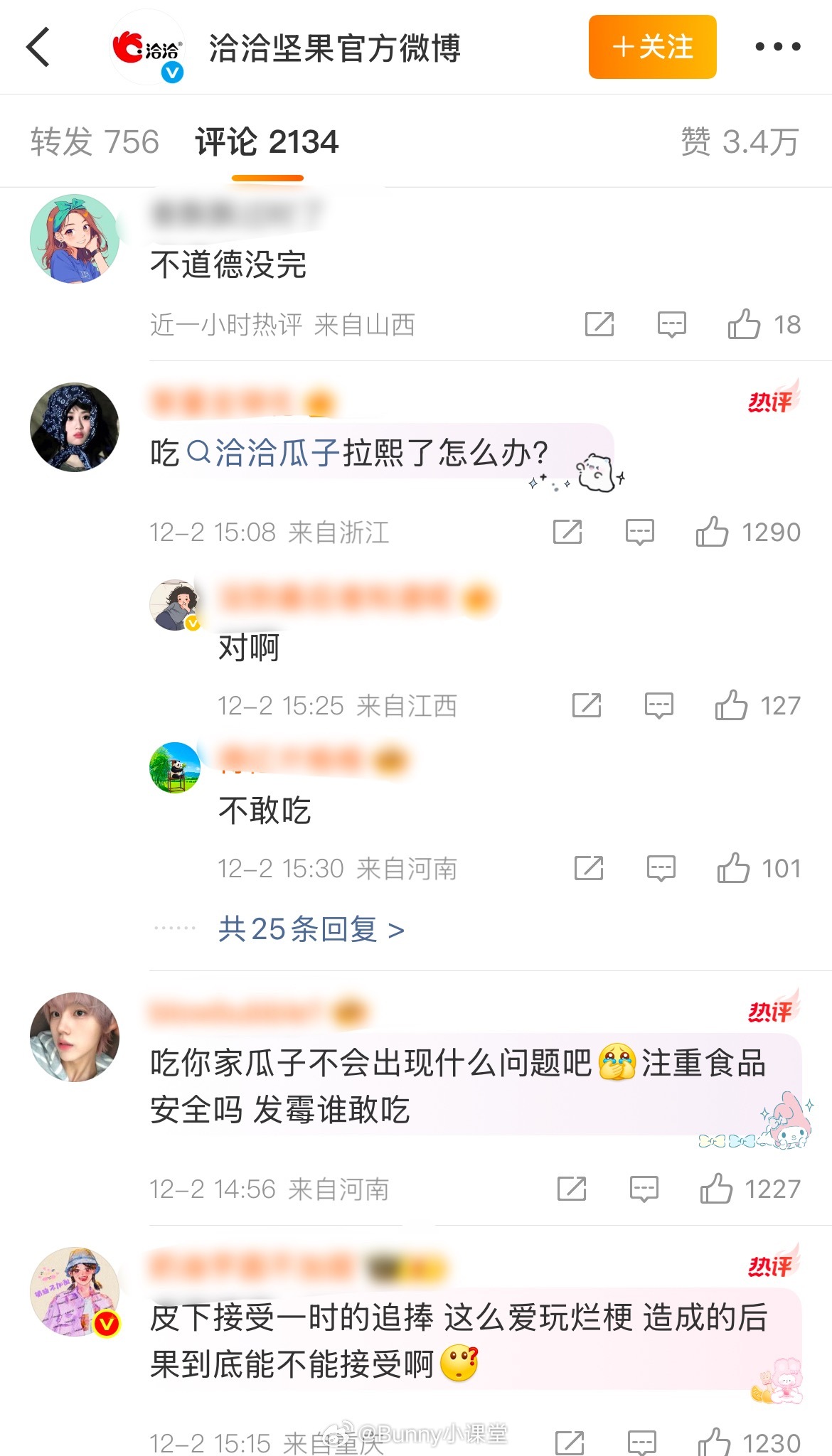 洽洽瓜子 洽洽瓜紫洽洽官方强调洽洽瓜子很干燥,没有多余的水分,“洽洽瓜紫”不等于“洽洽瓜子”!被粉丝指出是在内涵杨紫,现在要求品牌方道歉