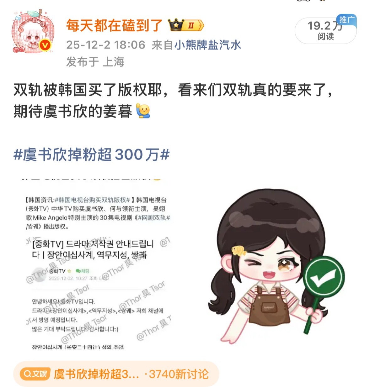 虞书欣生日会大麦二开来了,诡秘们没抢到的可以冲二开了,反正我已经买了摩天轮我也不