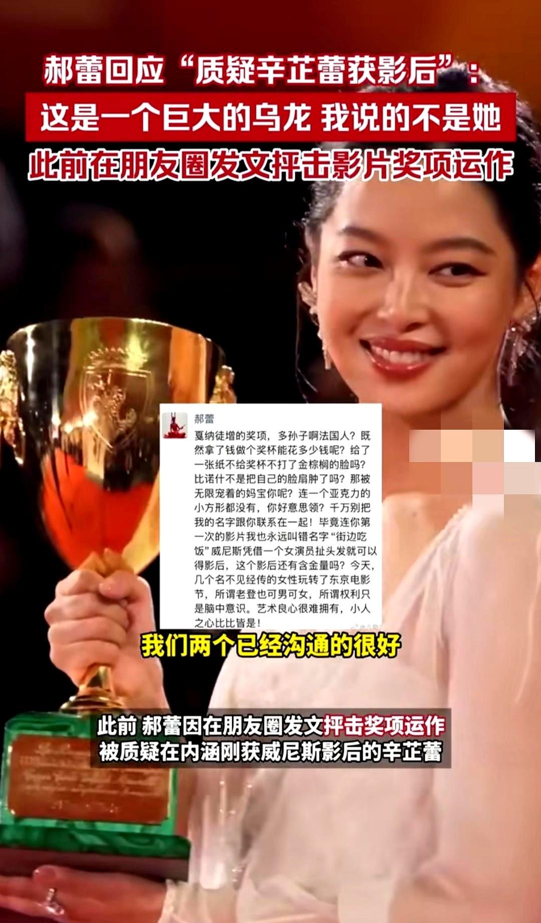 郝蕾一句话,差点让辛芷蕾的影后成了笑话。 11月7号,郝蕾在朋友圈开炮,说威尼