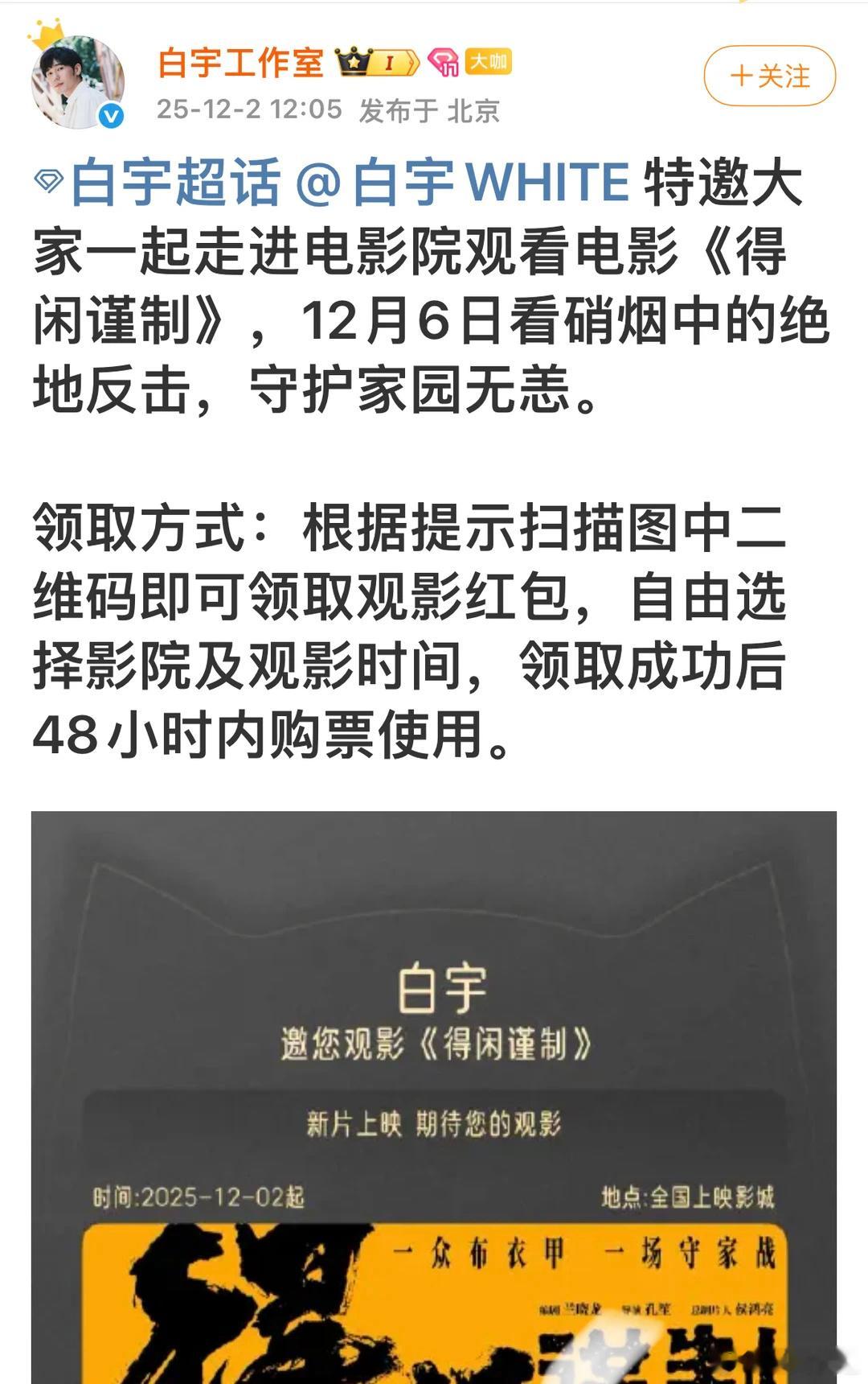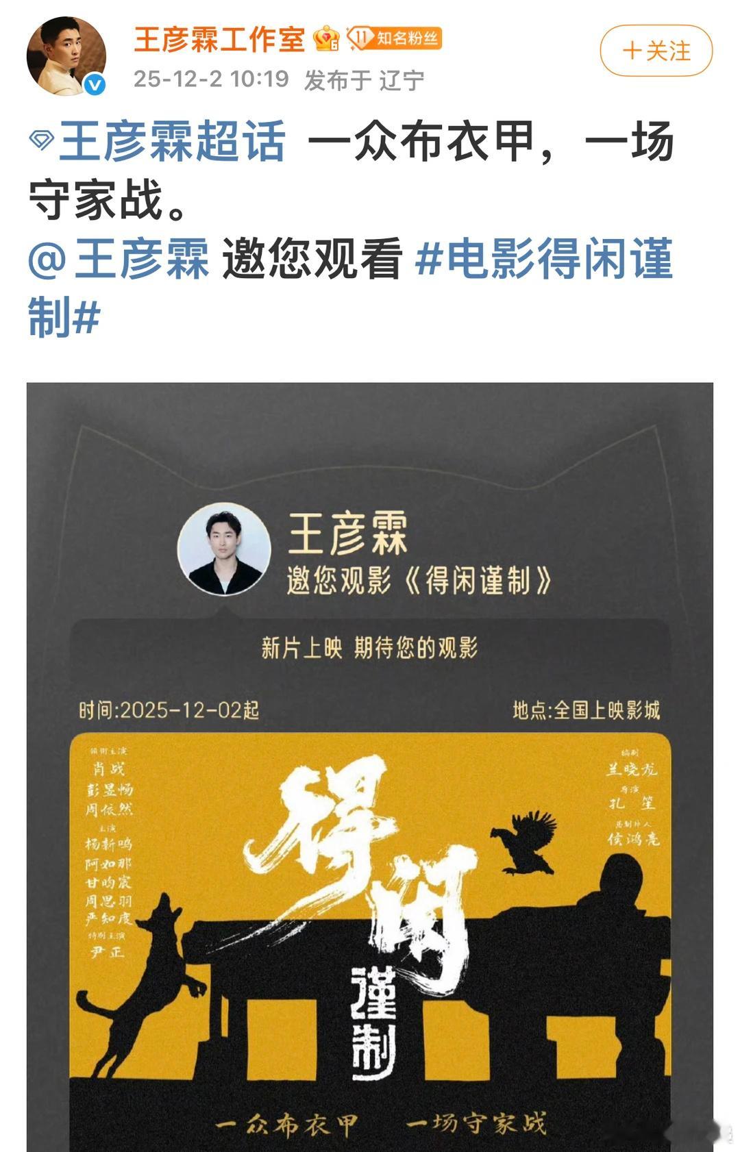 给得闲谨制包场的明星明星云包场这就开始啦!!12月6日一起看肖战新电影《得闲谨制》莫得闲肖战