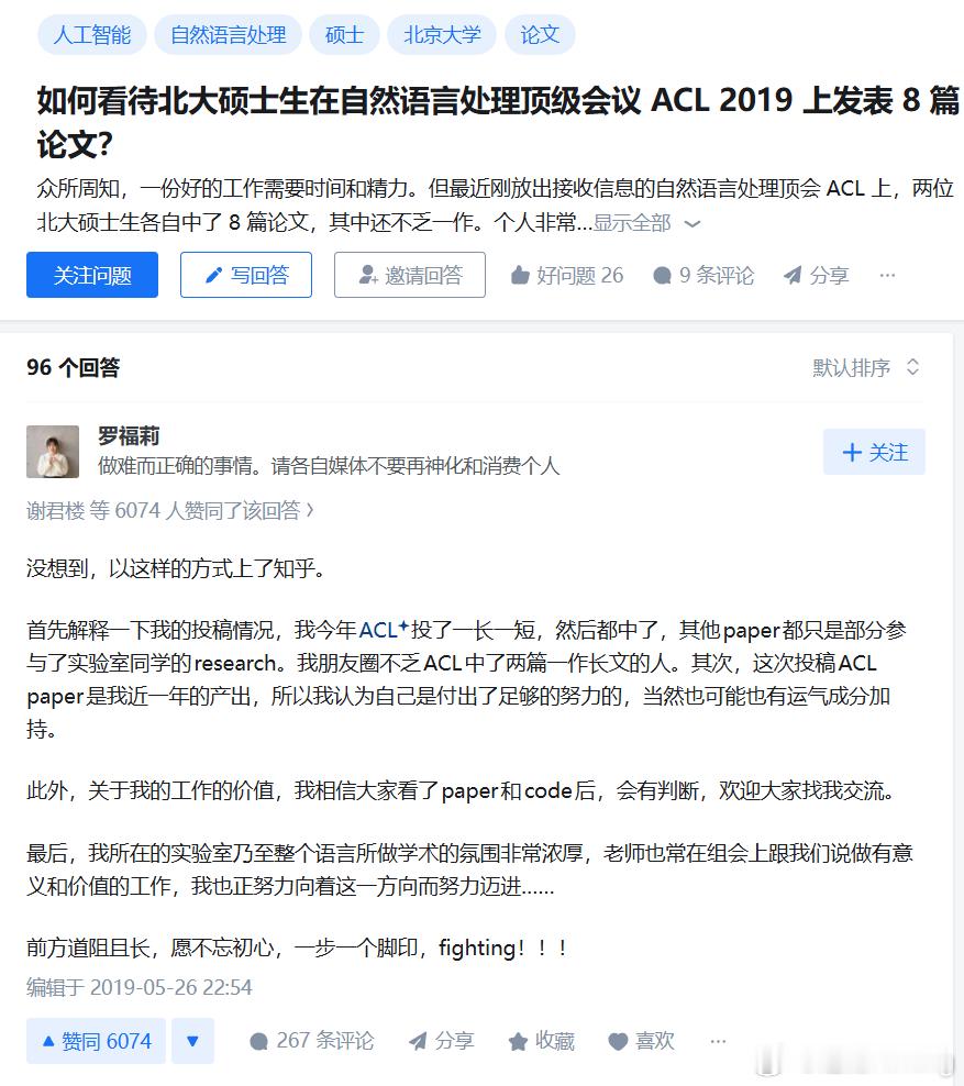 知乎上又有人带节奏,说罗福莉在ds团队贡献并不算突出,话里话外就是沽名钓誉,炒作的意思。但评论区有人指出,早在2019年,人家就因为在NLP领域顶会的成果被人讨论过一番了,如果你真去顺人家的经历,会发现非常合理且自然,从北师大以优秀成绩毕业,再到DS工作几年团队出亮眼成果,然后再被小米挖走,自身努力加上踩中风口,完全没有不对的地方。并且人家加入小米之后在小米的工作也有痕迹可查,基本也证明了含金量所在。其实我在最早也有点被带节奏,觉得人家可能也没有多牛,但后来在看了她在小米的产出还有多年前的成绩之后,也不得不说佩服,确实有东西。当然,就因为人家是给小米干活,就被一群没文化也没思考的人污名化成了只会炒作的人,其实这个回答说的挺对的,ds团队那么多人,就她一个因为加入了小米,被知乎上一堆人喷,只能说某些人的认知确实就这样了。就像罗福莉在签名中说的那样,不要神化和消费个人了,让人家好好上班吧。