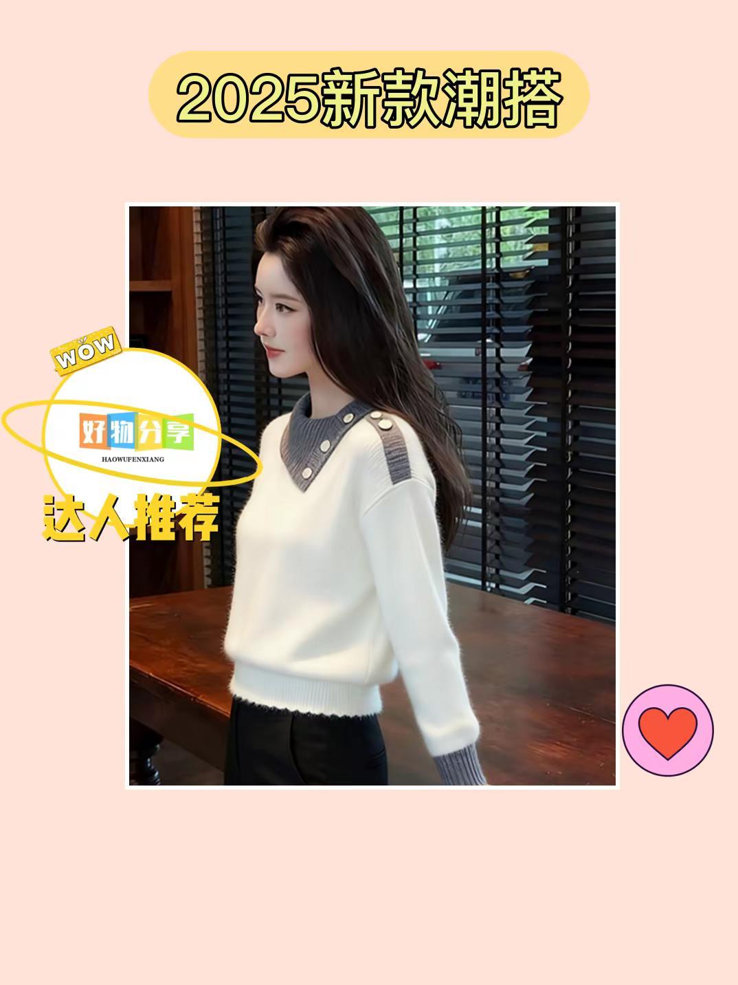赶紧入手这件冬季针织衫🤩。2025冬季新款毛衣太赞啦!老钱风拼色翻领针织衫,高级感满满。长袖设计超显气质,休闲又百搭,轻松打造潮流造型,赶紧入手!