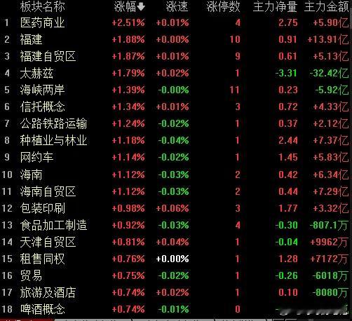 没有回拉!指数,午后延续了水下震荡,也算是稍有回拉,但真的不多......关键还是没量,全天1.59万亿,缩量2805亿。这个成交量,没行情是正常的。缩量,自然会是轮动+抱团的行情,这已经成了大A的一贯尿性。所以,凡是布局前面热门超跌股的,或者头铁抱团没走的,今天收获都很不错。其他的呢?也就仅剩福建、商业航天可以看看了。福建,消息催化(沙县小吃惠台12条)+抱团,所以走的最好,如果指数短期内起不来的话,这个方向肯定还有反复,只是性价比应该不高了,技术好的可以继续。商业航天,龙头目前都是板的,也有几个涨停,只是板块效应并不是很好,应该是成交量的锅,所以保持关注应该没什么问题。整体而言,依旧是坚定看多,谨慎做多,少追高,多低吸吧。股票