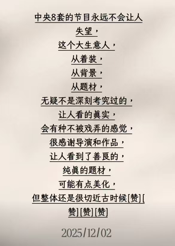大生意人短剧无法替代的长剧 《大生意人》的叙事节奏和人物塑造,体现了长剧独有的从容。陈晓的表演在其中张弛有度,与剧集气质相得益彰。