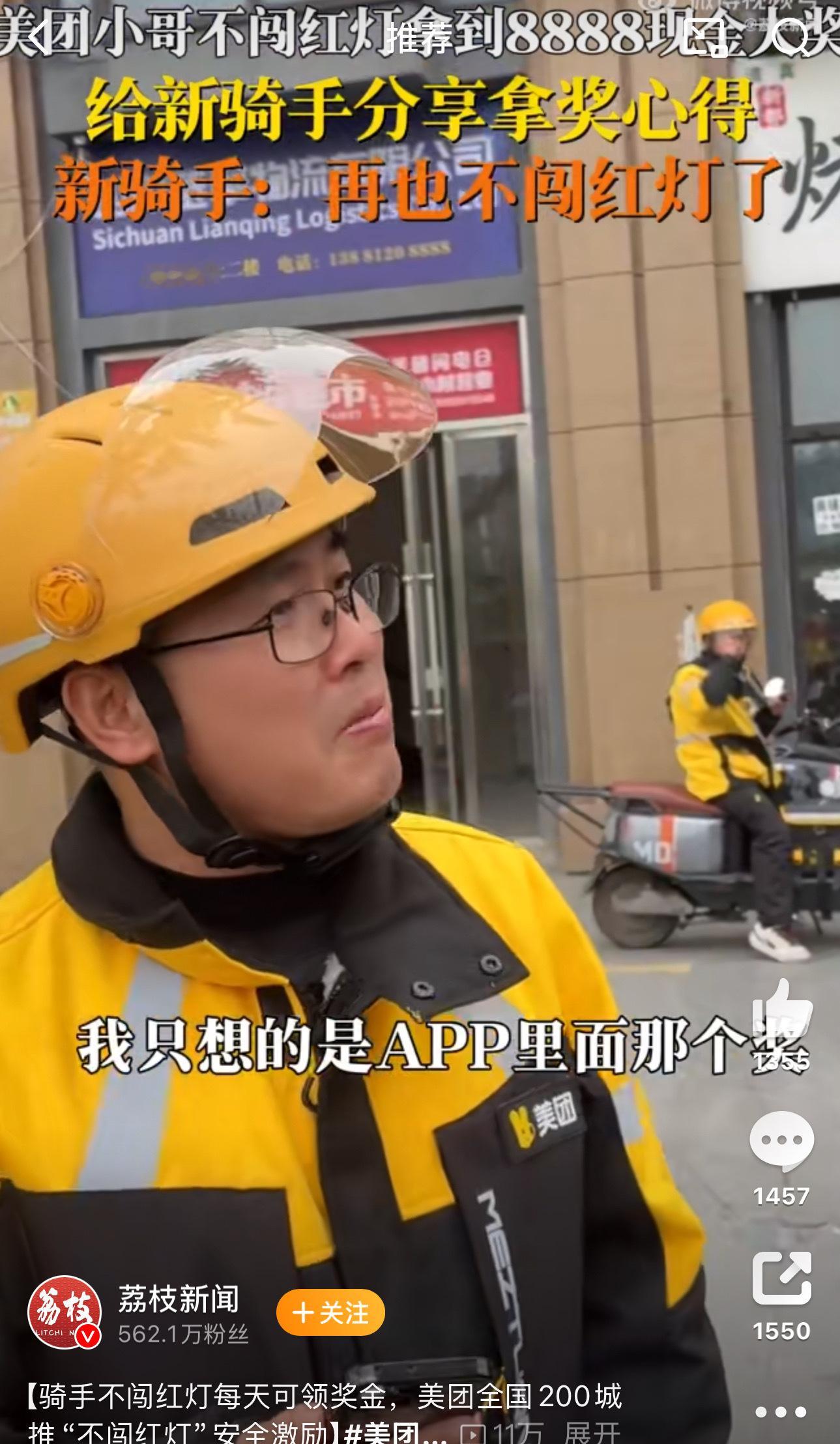 美团给骑手小哥发不闯红灯奖作为消费者,其实很希望骑手们都能遵守交通规则。现在平台用奖金鼓励骑手不闯红灯,这种做法真的很棒!下次看到骑手在红灯前停车等待,咱们就耐心等等,毕竟安全最重要。