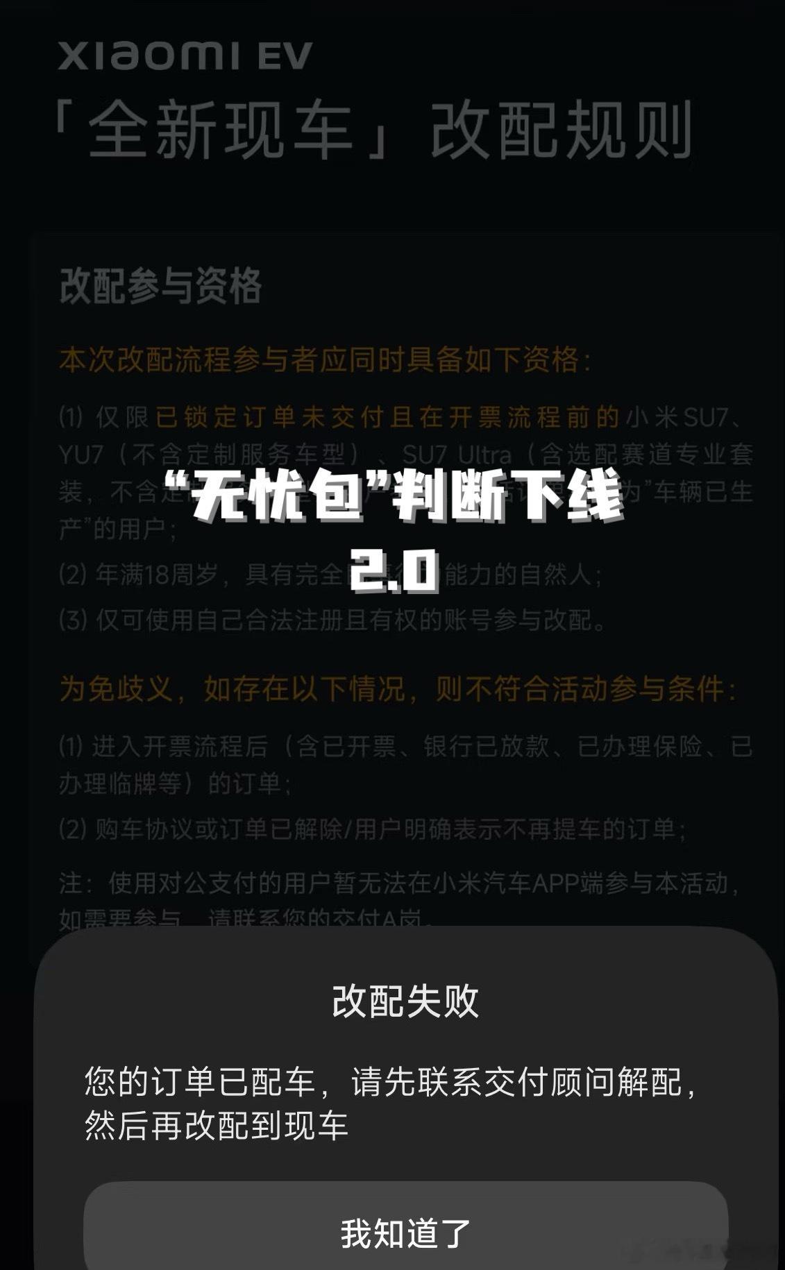 判断小米汽车 是否临近下线的新方法。前有无忧包,现在有改配